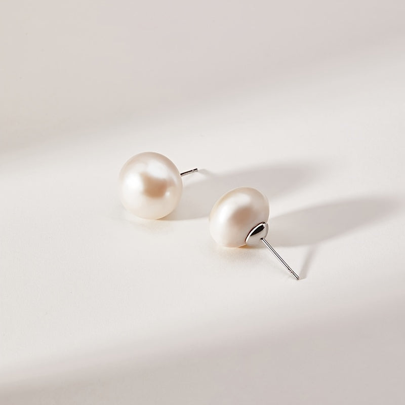 Enhance your elegance with these beautiful freshwater pearl stud earrings featuring sterling silver ear needles. Perfect for any occasion.