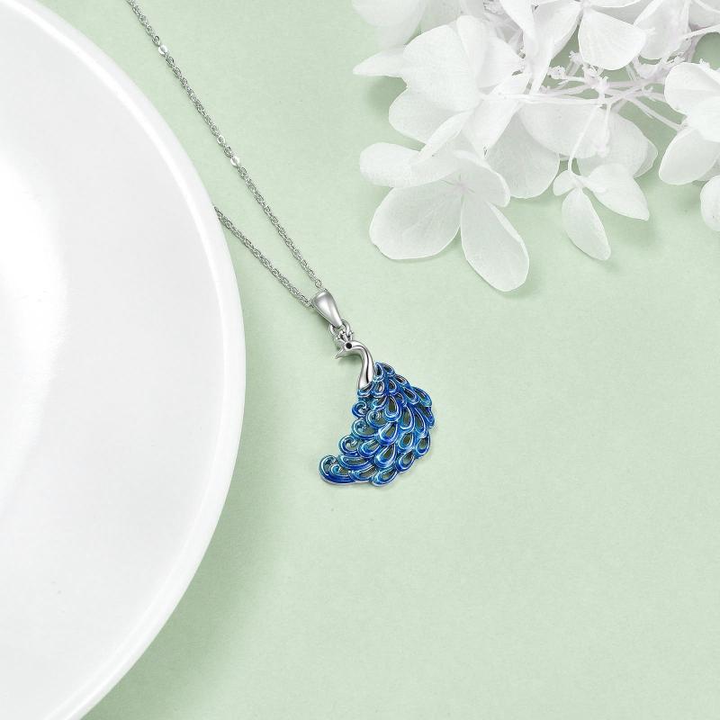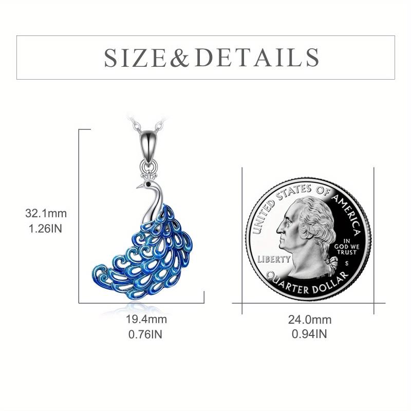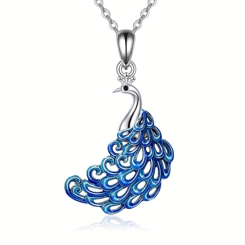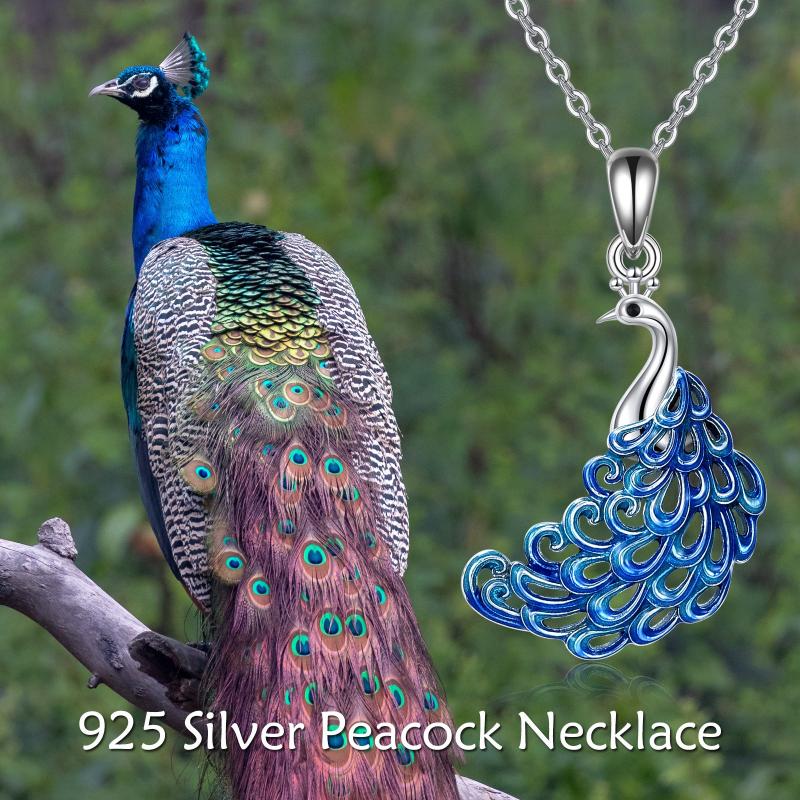 This stunning necklace features a peacock feather pendant crafted from sterling silver, creating a unique and elegant piece of jewelry.