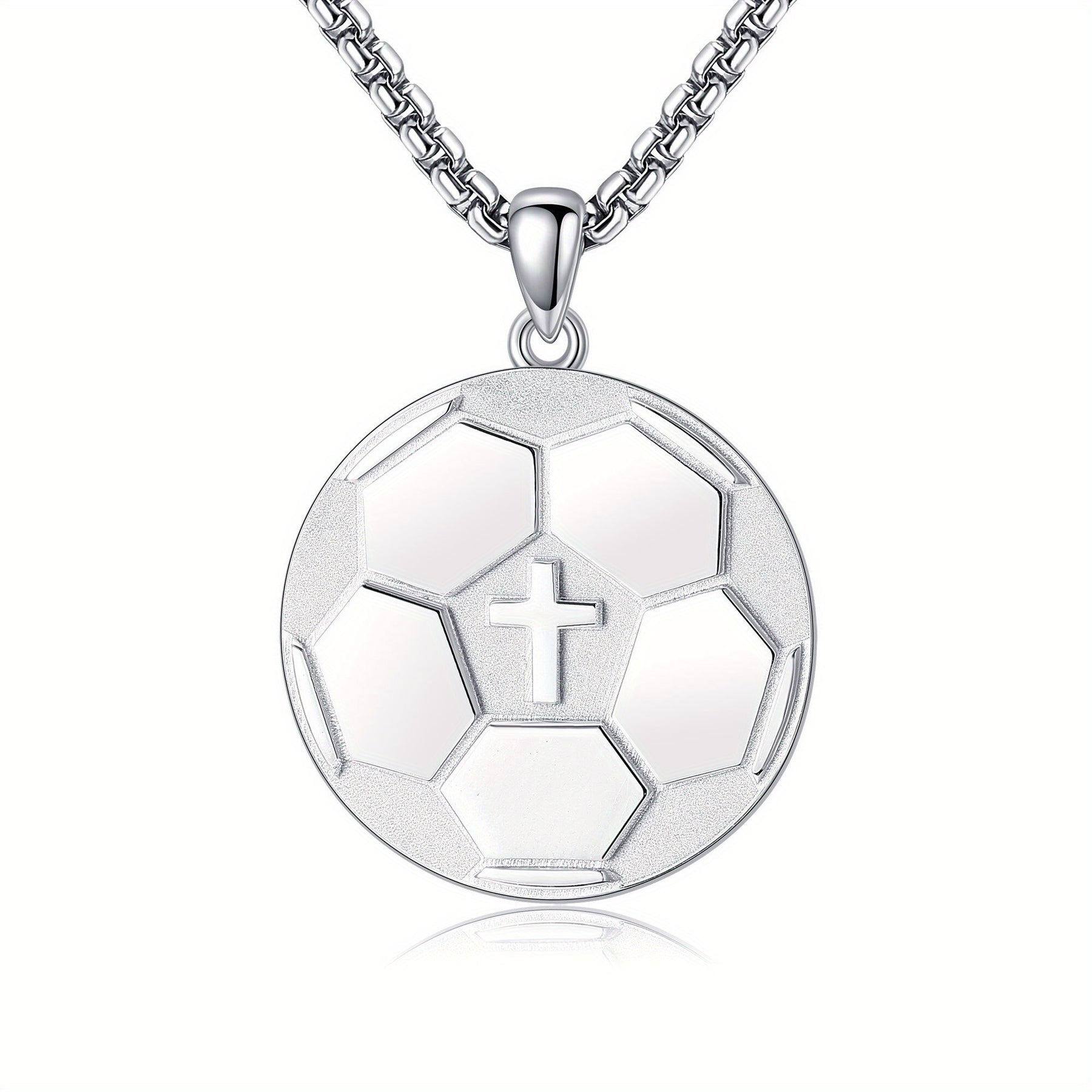 Show your love for soccer with this S925 sterling silver pendant necklace, perfect for sports enthusiasts. Ideal gift for athletes.