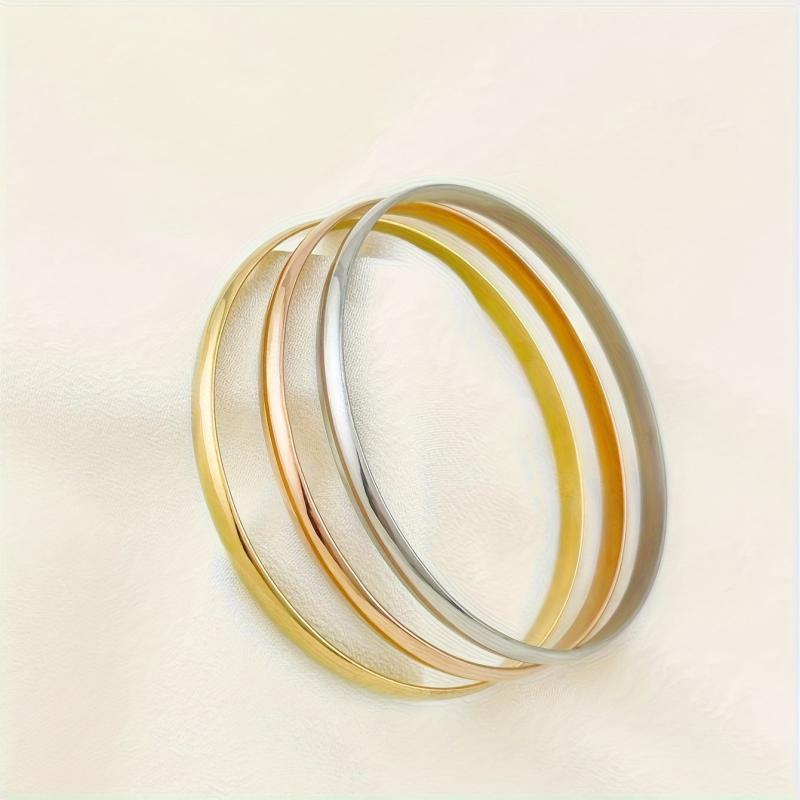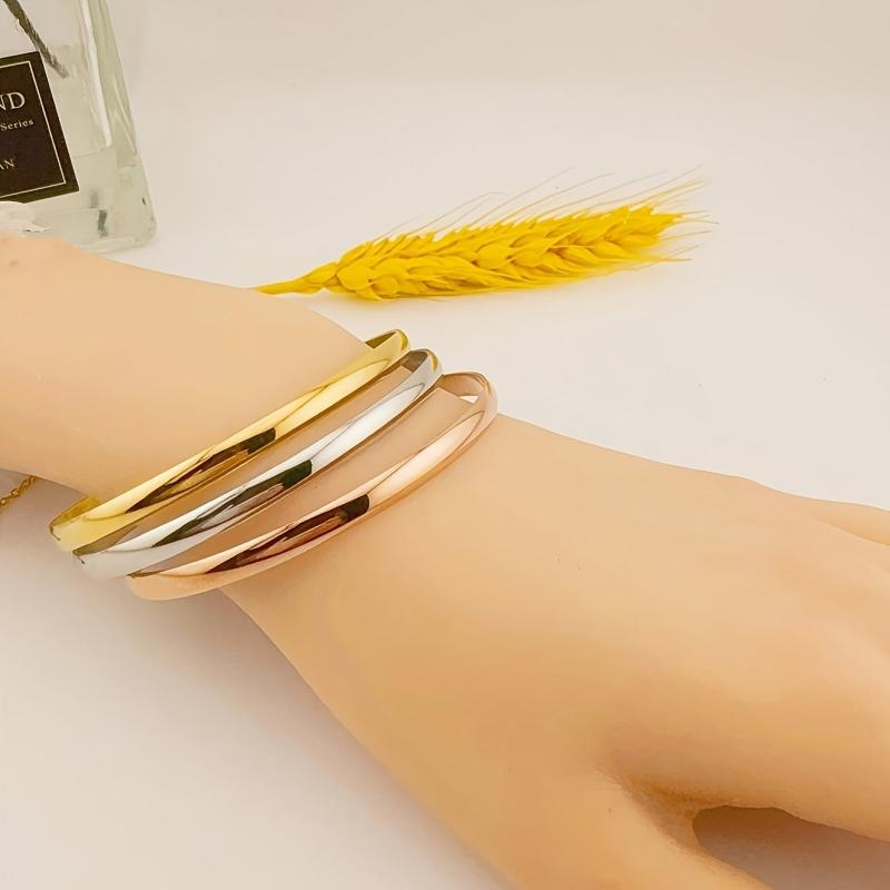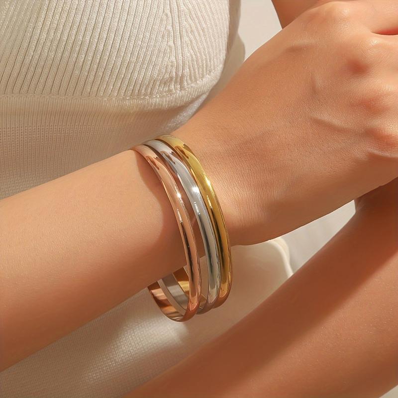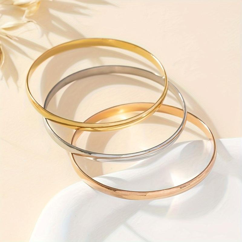 Elevate your style with this set of 3 sleek stainless steel bracelets. Perfect for everyday wear or special occasions.