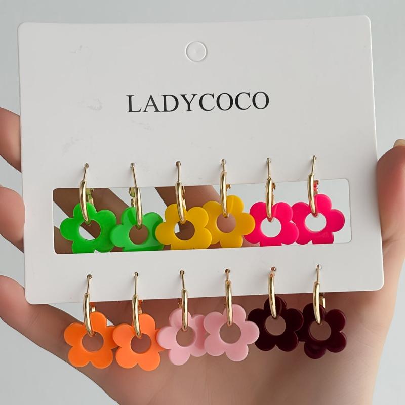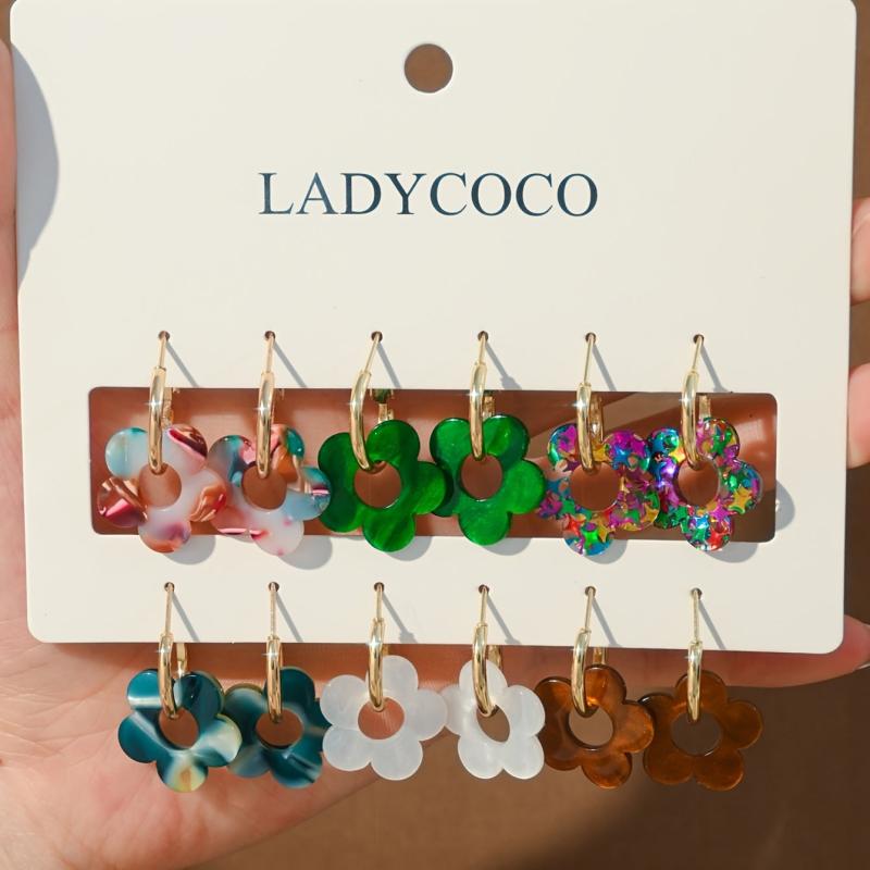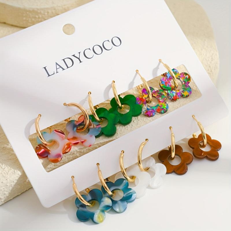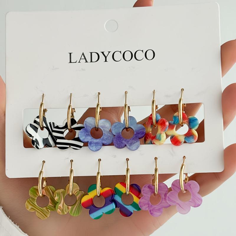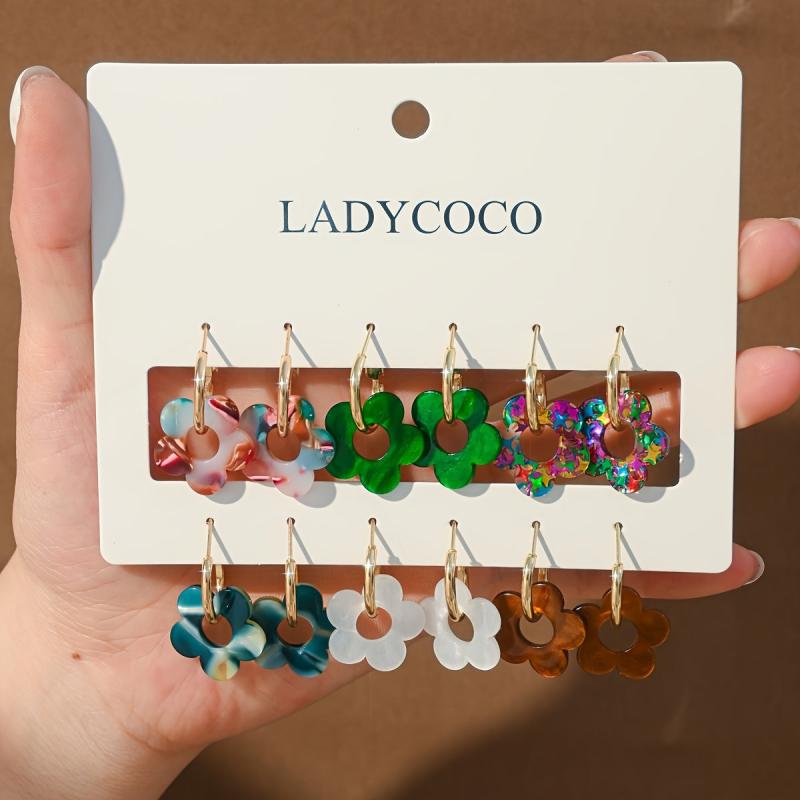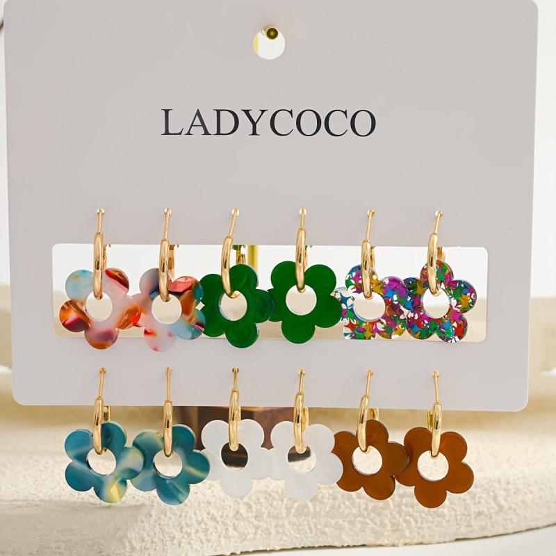 Enhance your style with this set of 6 fashionable flower pendant earrings. These earrings are perfect for any outfit and occasion, making them a great gift for women.