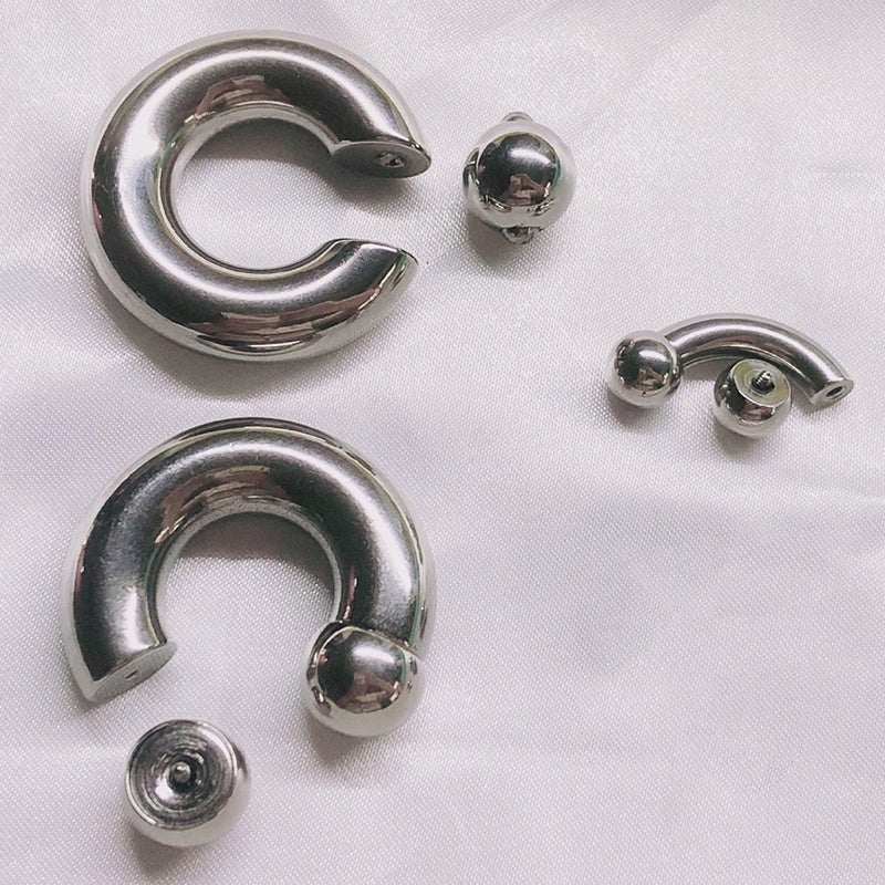 This surgical steel circular earring is a versatile jewelry piece suitable for both men and women. It is perfect for various piercings and adds a stylish touch to any outfit.