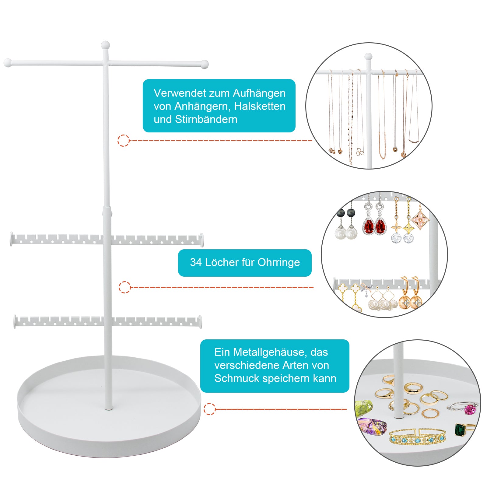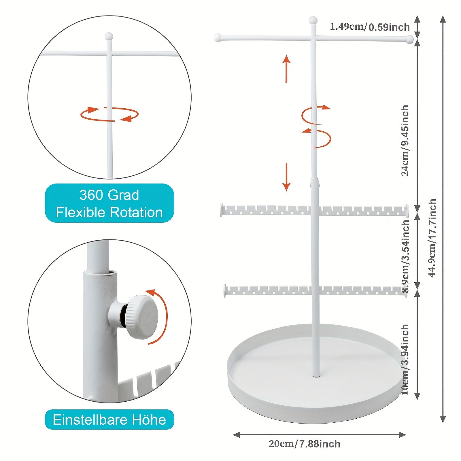 Keep your jewelry organized and easily accessible with this T-shaped jewellery stand. Perfect for displaying necklaces, earrings, bracelets, rings, watches, and other jewelry accessories.