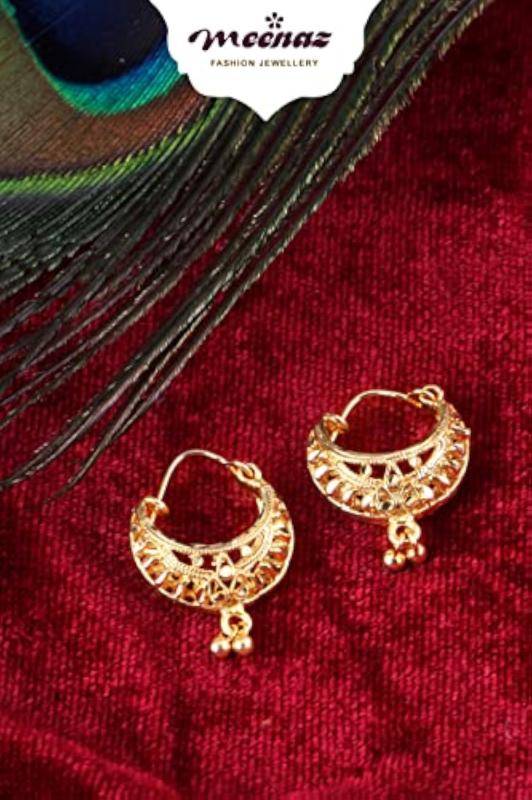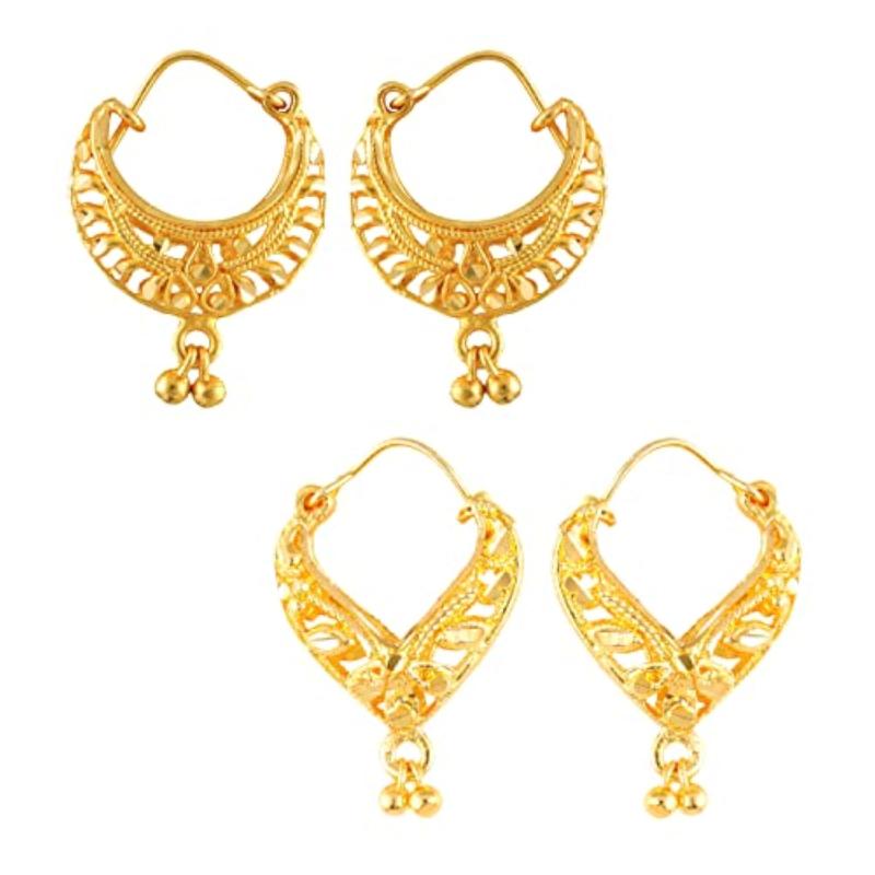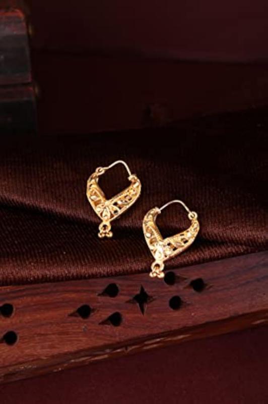 Elegant and traditional hoop earrings combo set made with temple design featuring 1 gram 18k copper brass with ruby stones. Perfect for adding a touch of South Indian style to your outfit.