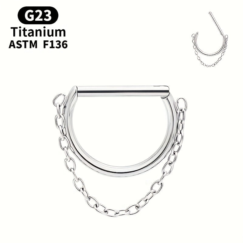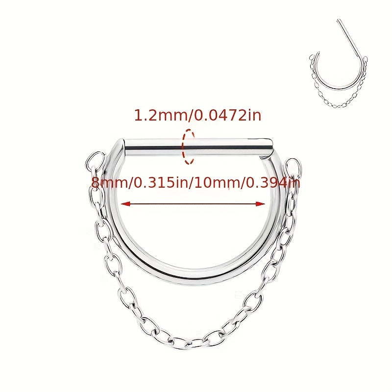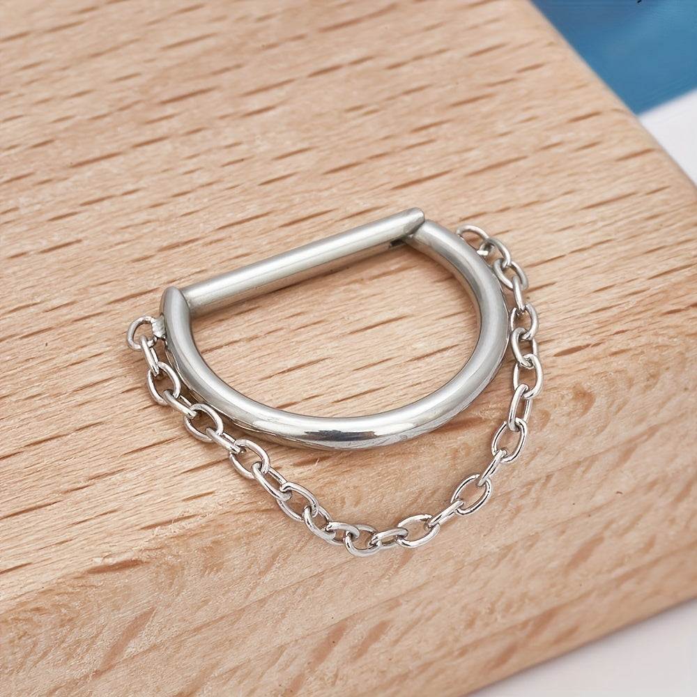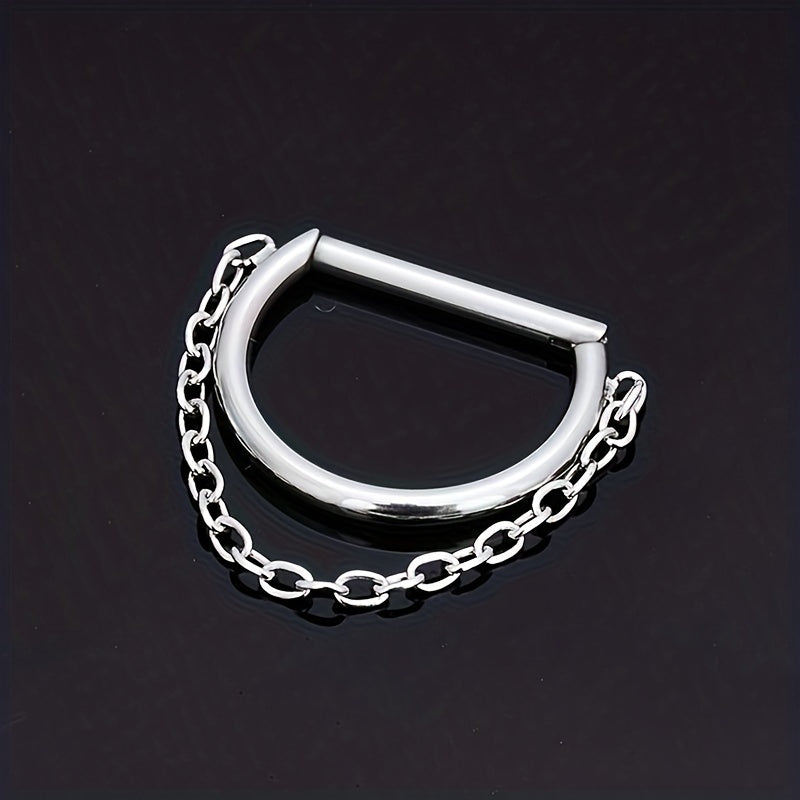 This titanium goth nose ring features a hinged clicker design with a D shape and tassel, perfect for tragus, ear cartilage, and other body piercings.