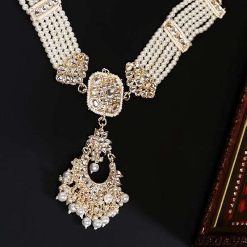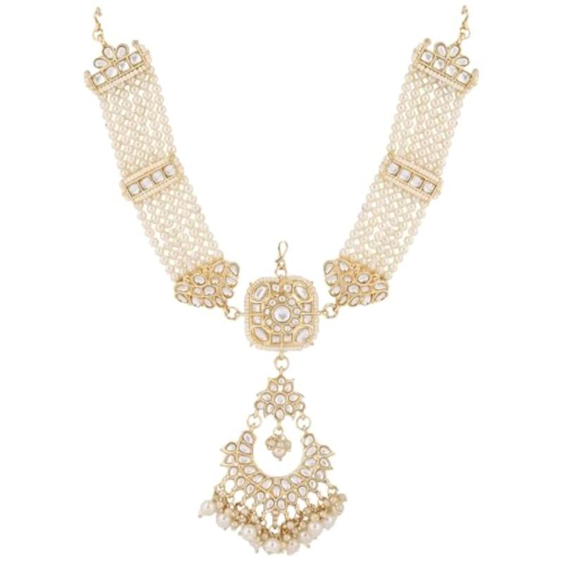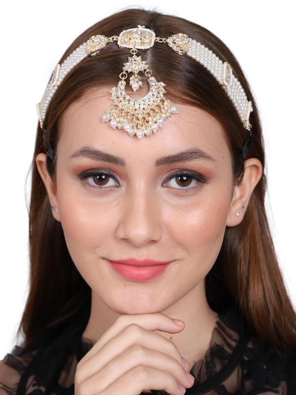 Elevate your traditional look with this exquisite Kundan Sheeshphool Maang Tikka Matha Patti. Perfect for weddings, parties, and special occasions.