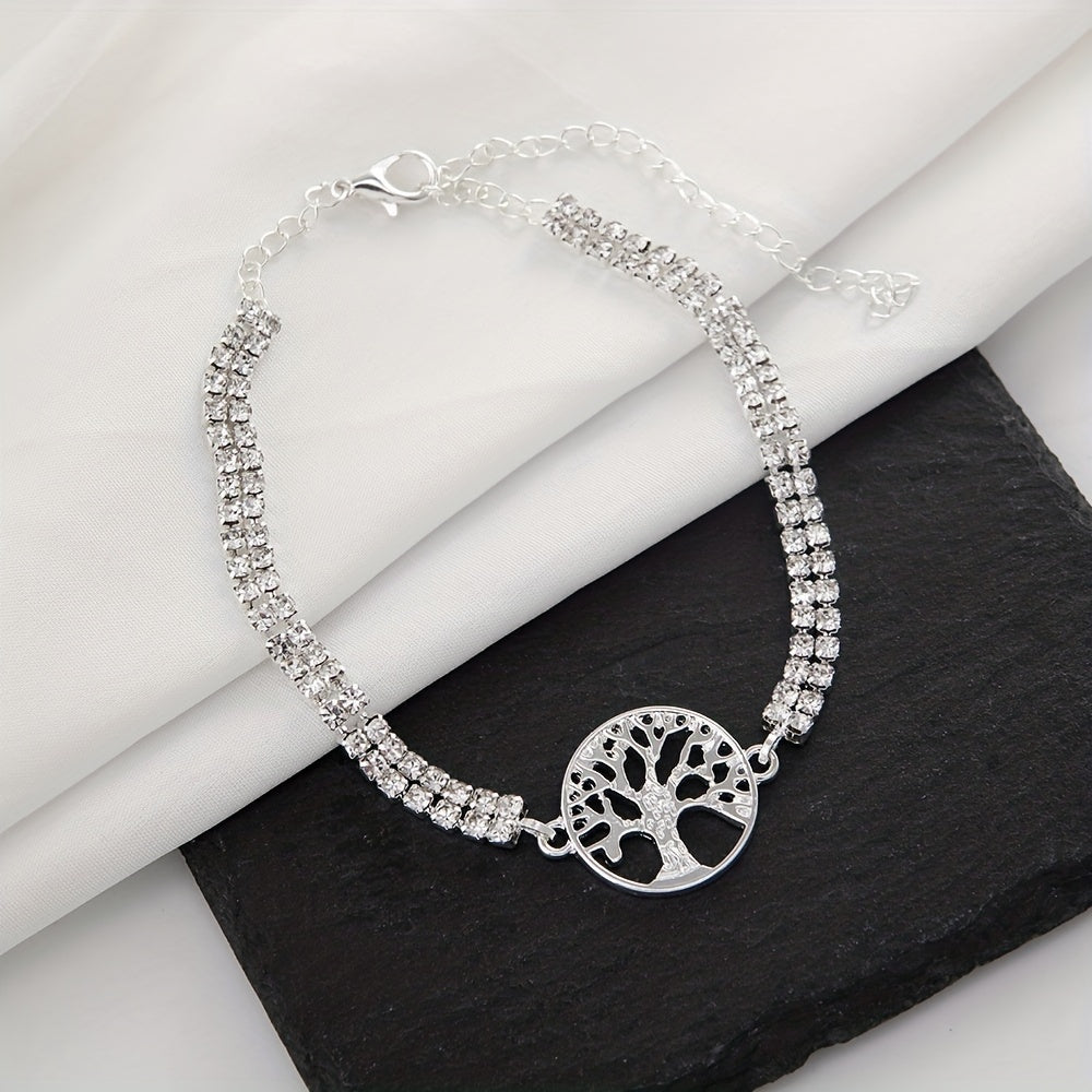 This beautiful anklet features a round pendant with a tree of life design, perfect for adding a touch of personality to your outfit. It is made of alloy and is comfortable to wear.