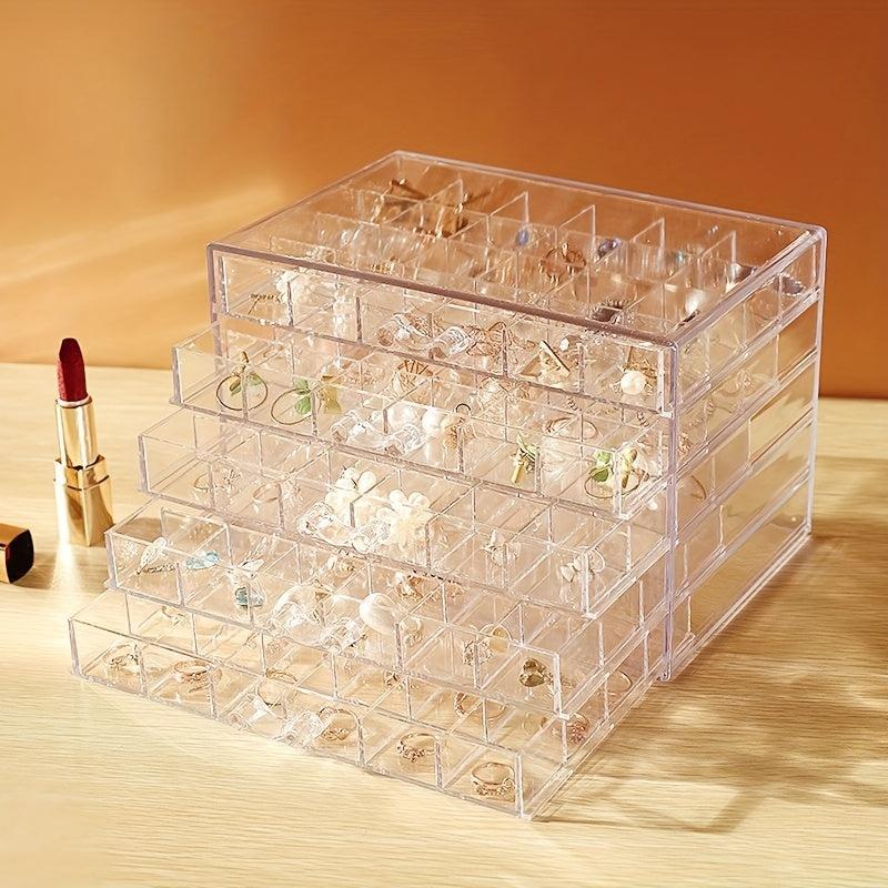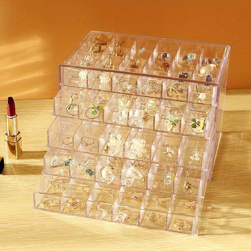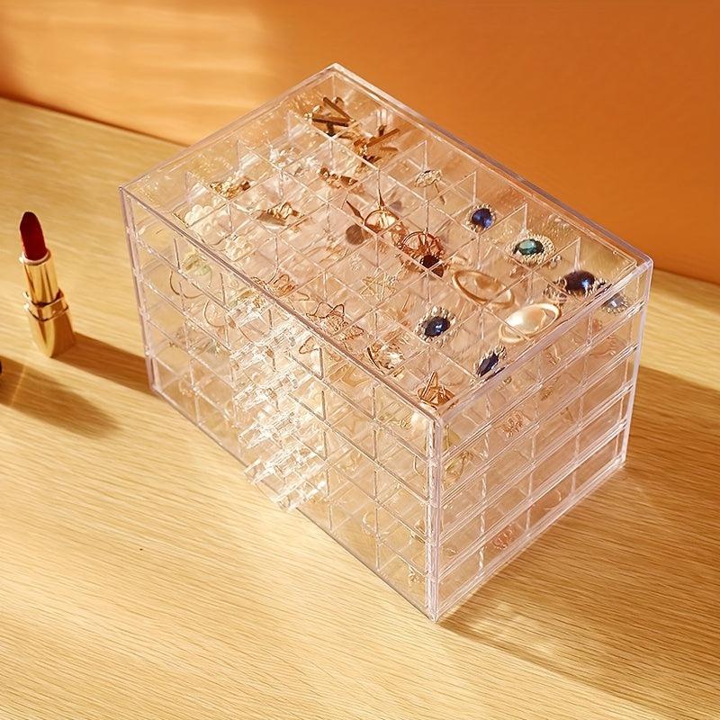 Keep your rings, earrings, and beads organized in this convenient storage box. The transparent design allows you to easily see the contents.