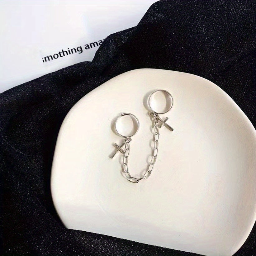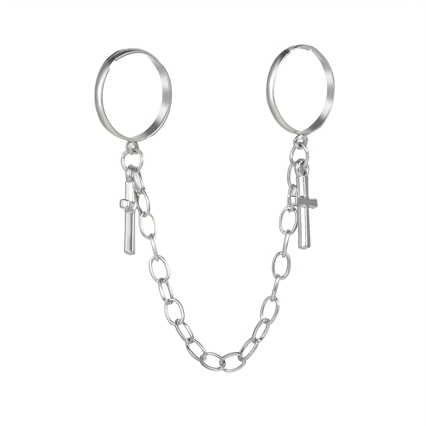 Add a touch of style to your look with this two-finger chain cross open ring. It features a sleek design that is perfect for everyday wear.