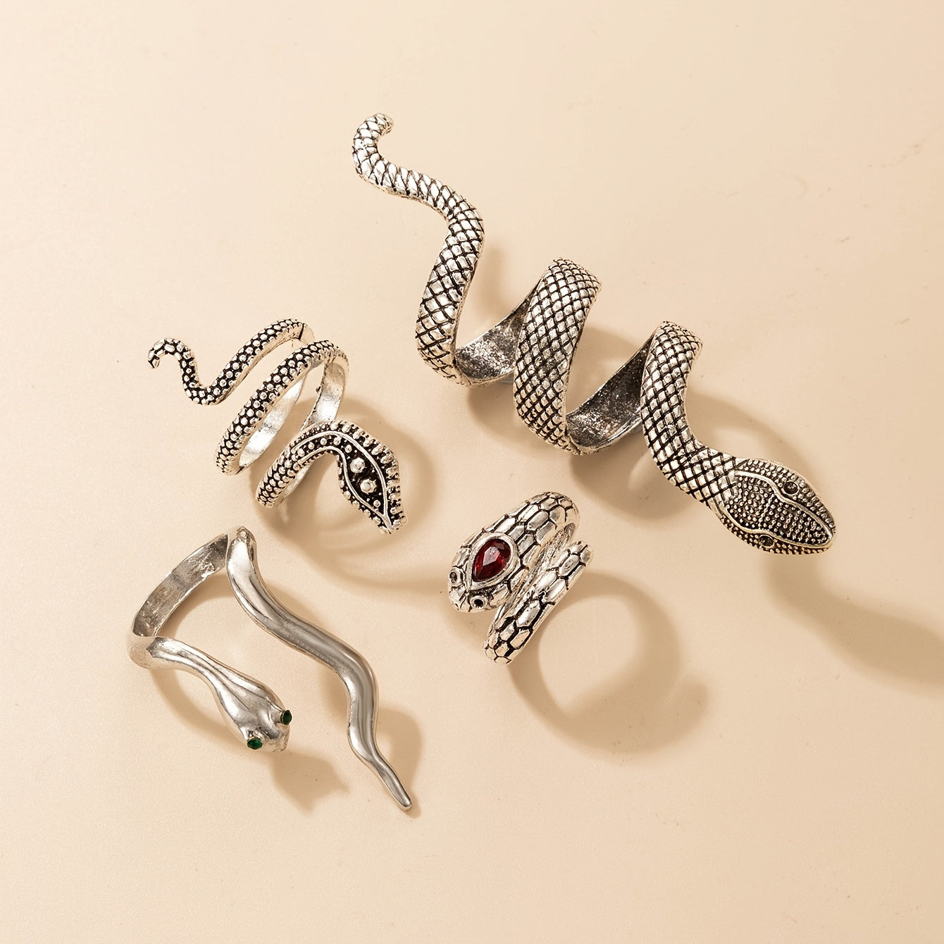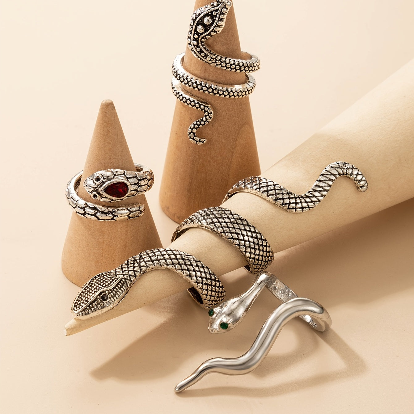 Elevate your style with this set of 4 unique snake rings, perfect for parties, holidays, and gifting. Show off your personality with this eye-catching jewelry piece.