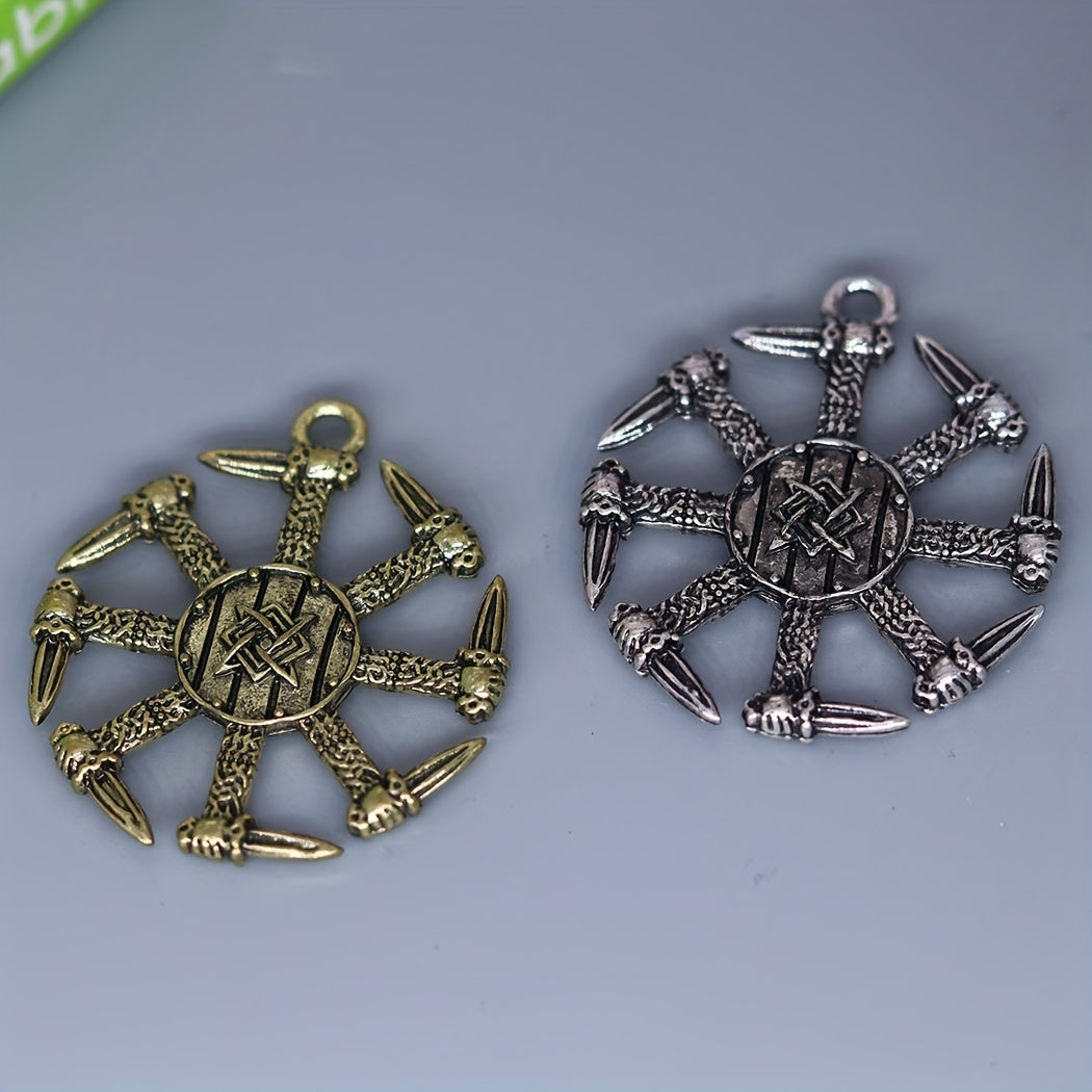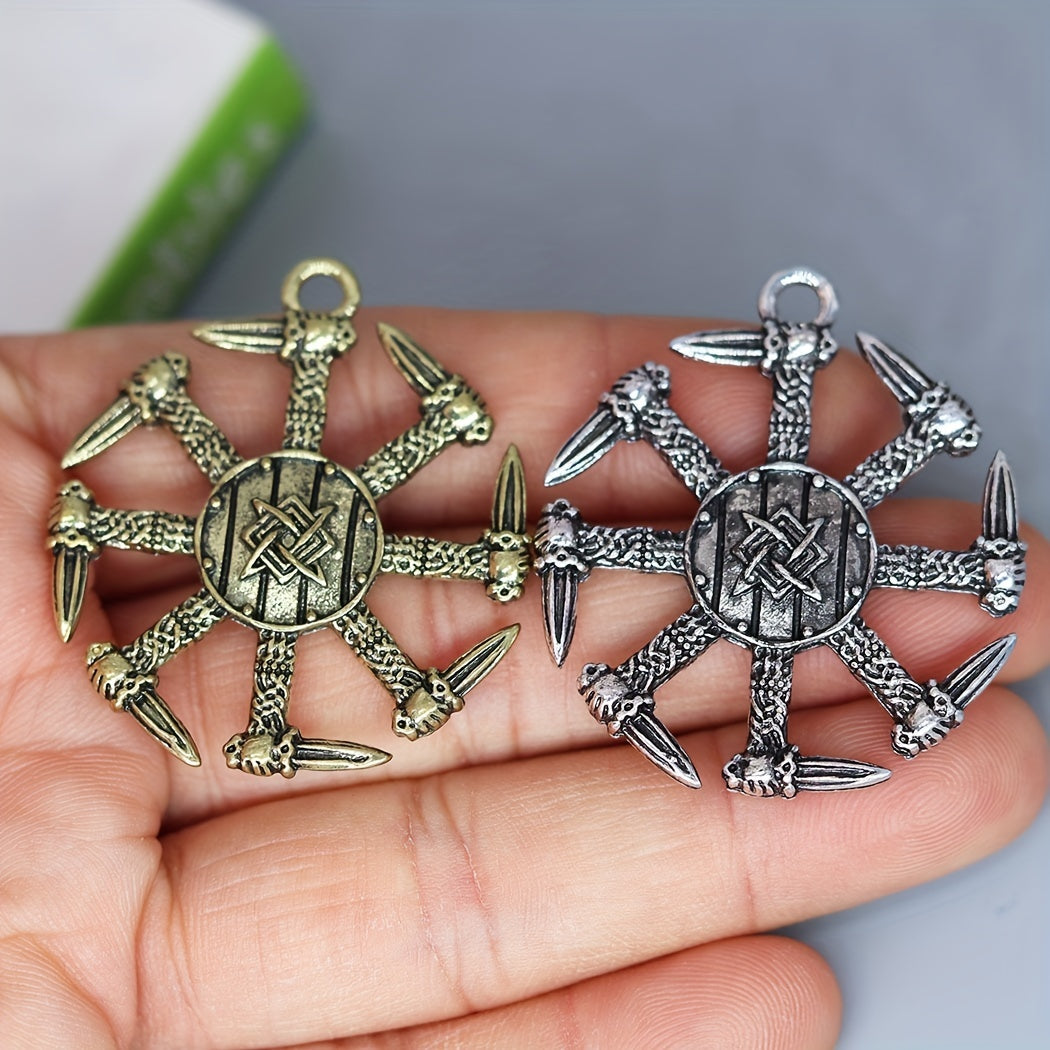 This stunning Kolovrat sword charm pendant is perfect for DIY necklace, earrings, and jewelry making projects. Add some Viking flair to your creations!