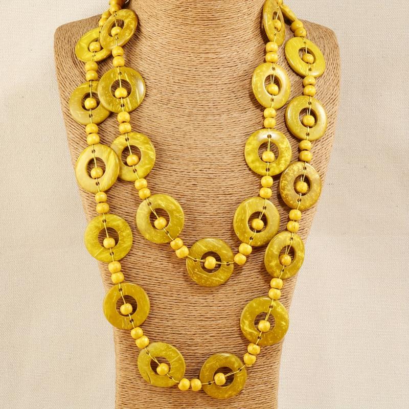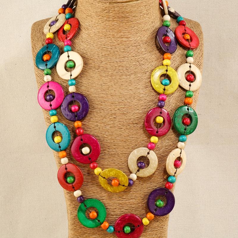 Elevate your daily wear with this unique Vintage Boho Wooden Necklace featuring colorful coconut shells. Perfect for spring and all seasons. Ideal for gifting on any occasion.