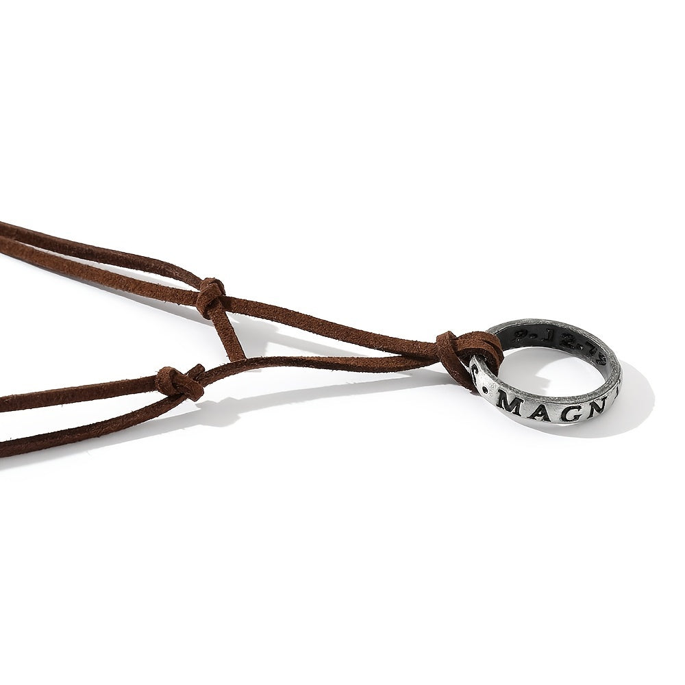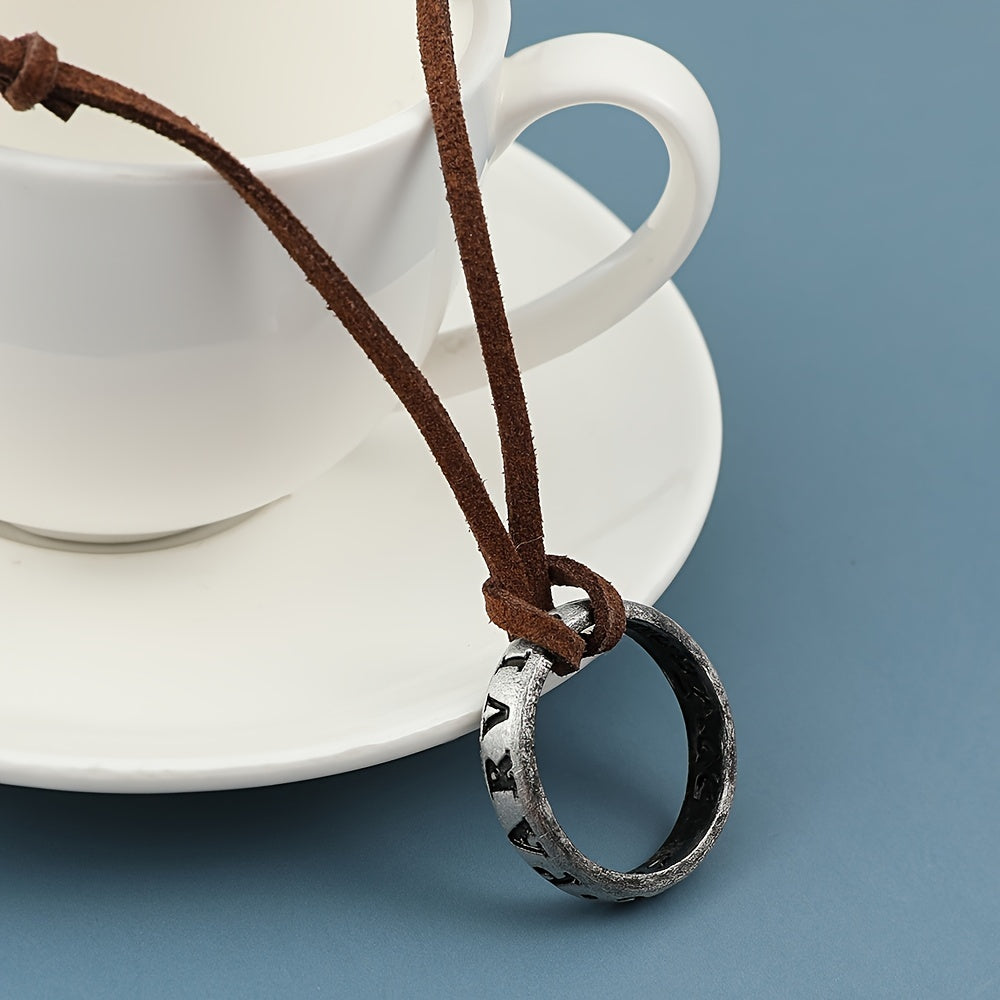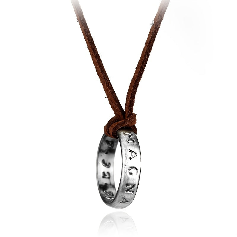 This classic vintage necklace features an engraved ring pendant design, perfect for men who appreciate timeless style.
