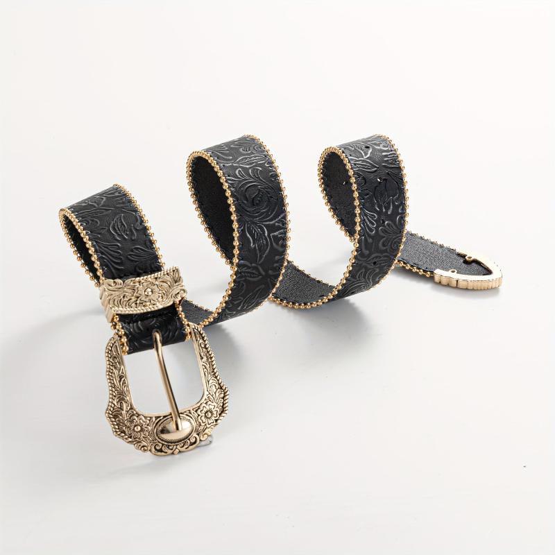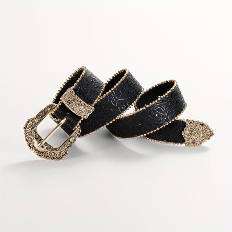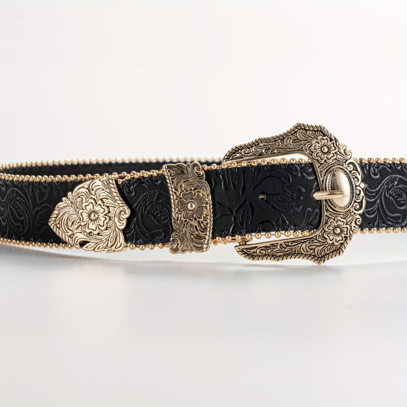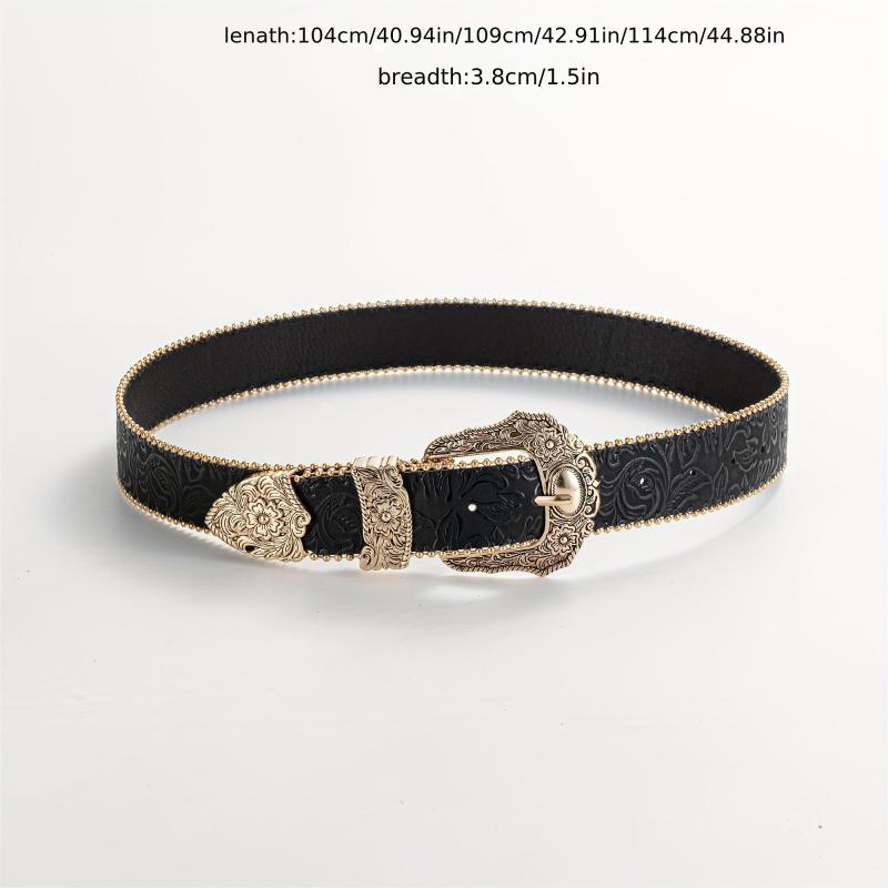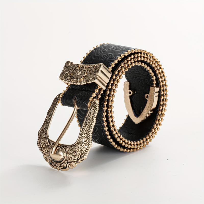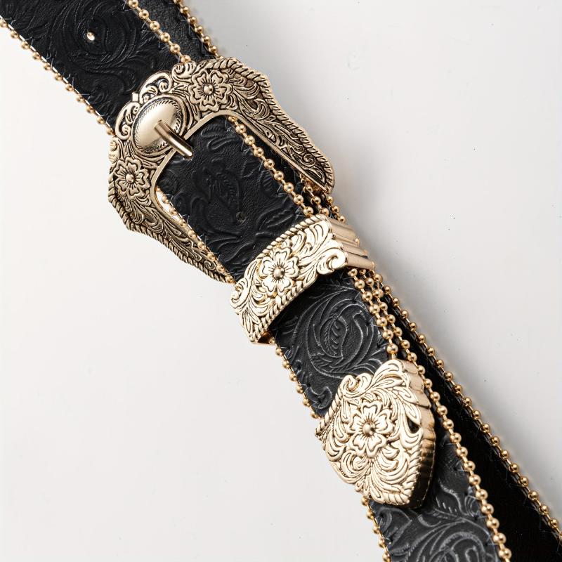 Add a touch of punk style to your outfit with this beaded belt featuring a glitter pattern. Suitable for daily commute and weekend casual wear. Made from non-textile material without feathers.