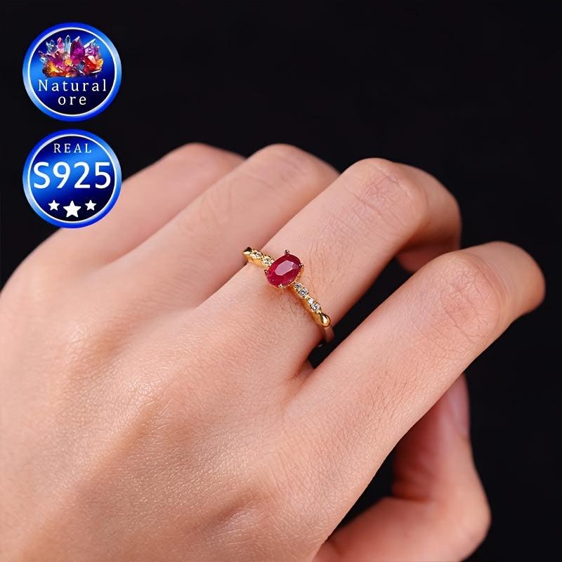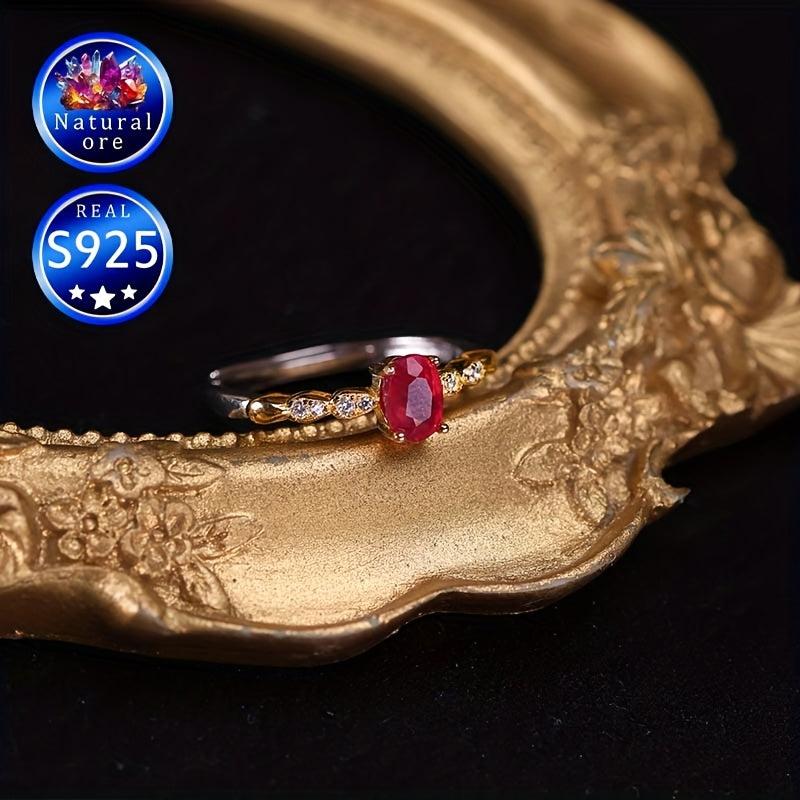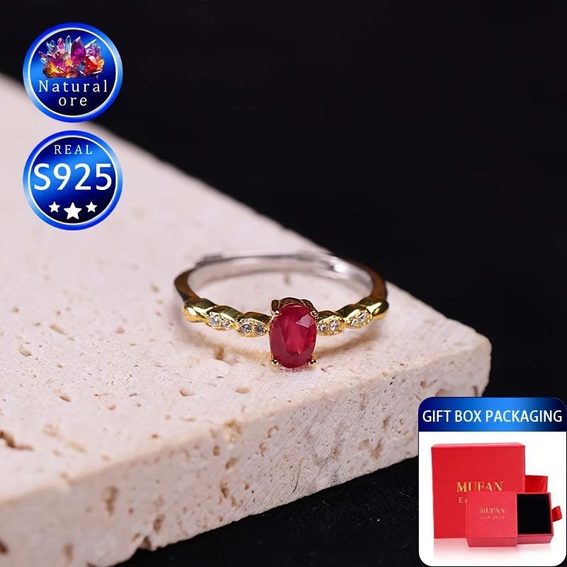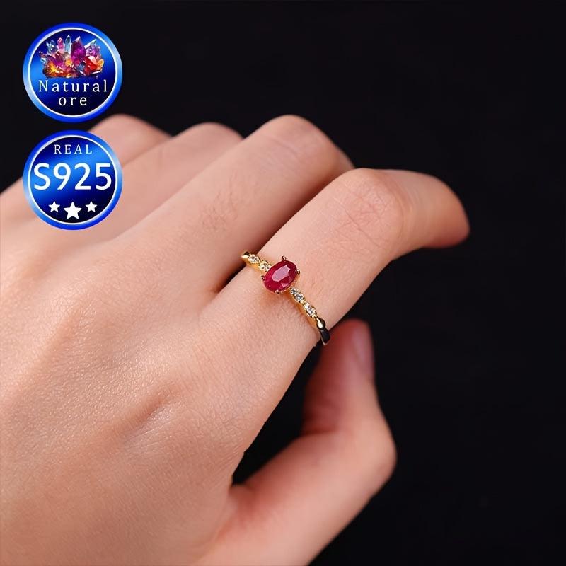 Elegant S925 silver ring featuring a natural stone mosaic in red, perfect for July birthdays. Adjustable for a comfortable fit.