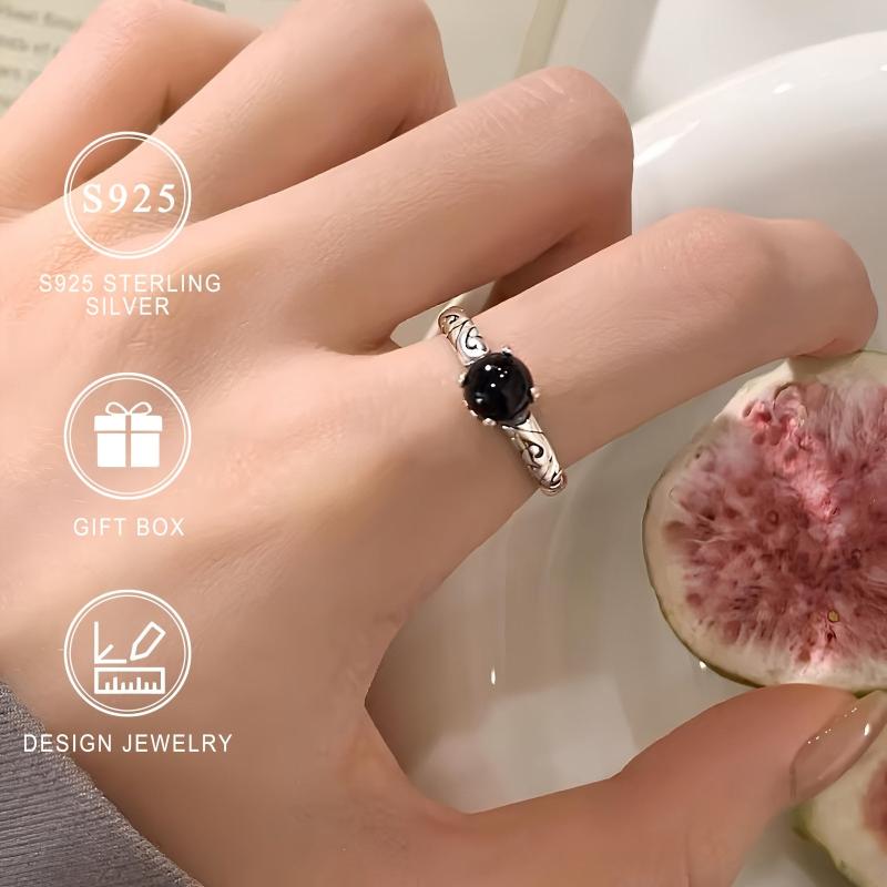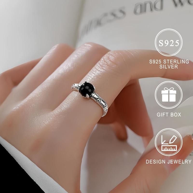 This stunning 925 sterling silver ring features natural agate and intricate carving, making it ideal for daily wear or gifting. It is hypoallergenic and nickel-free, ensuring comfortable wear.