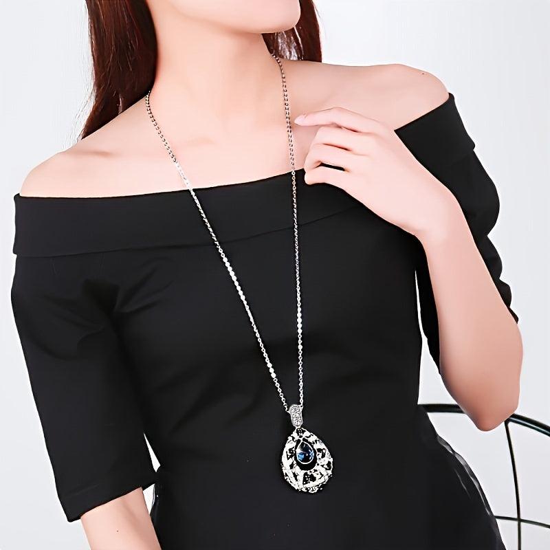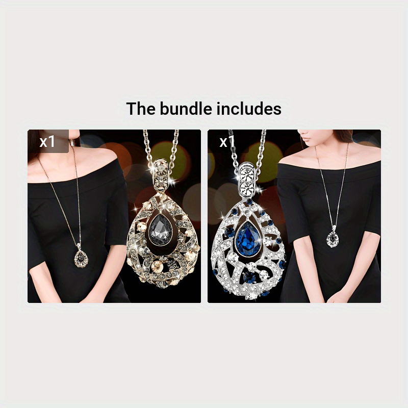 Water Drop Rhinestone Necklace with Pendant - Women's Long Neck Jewelry