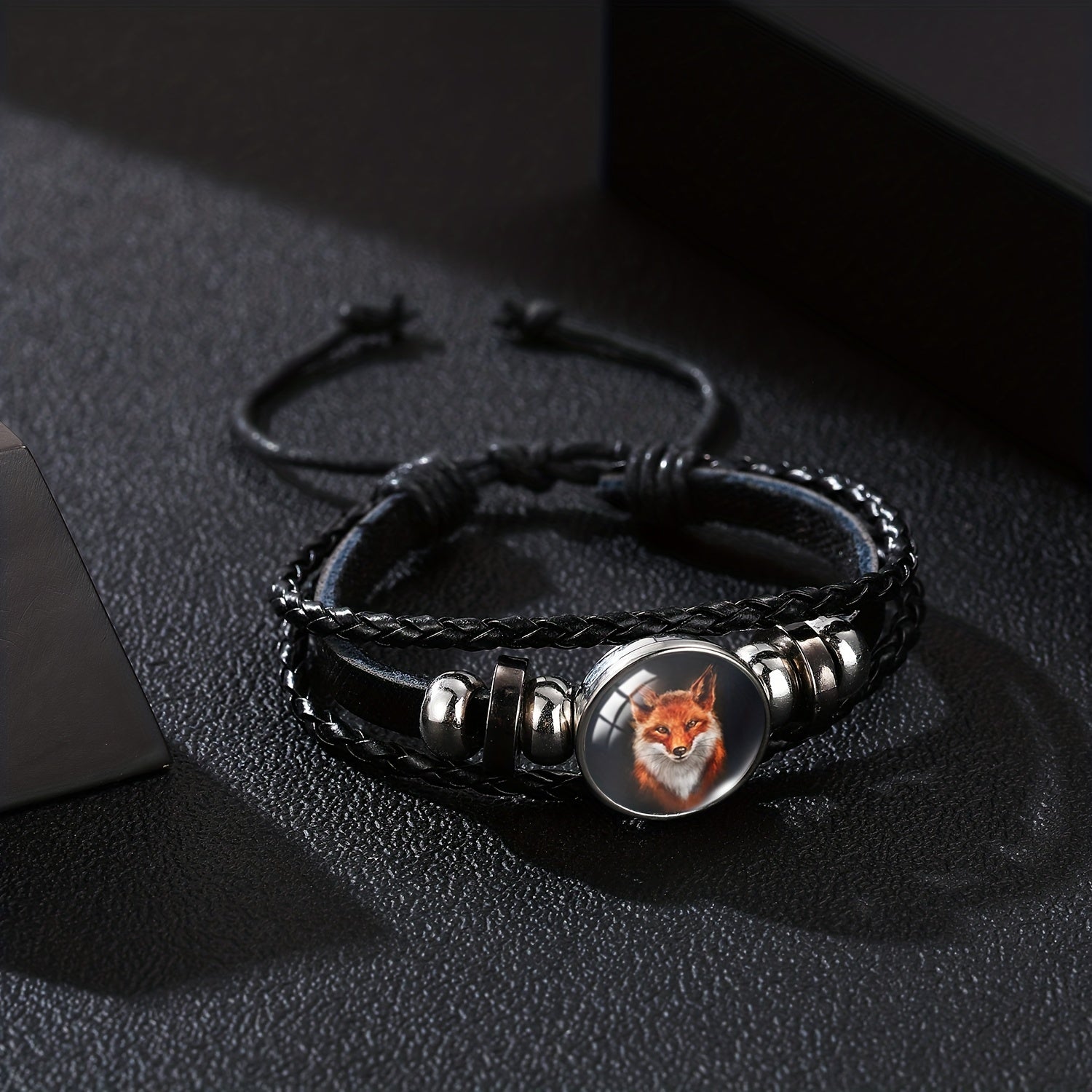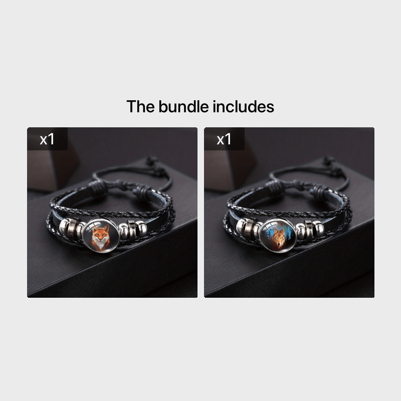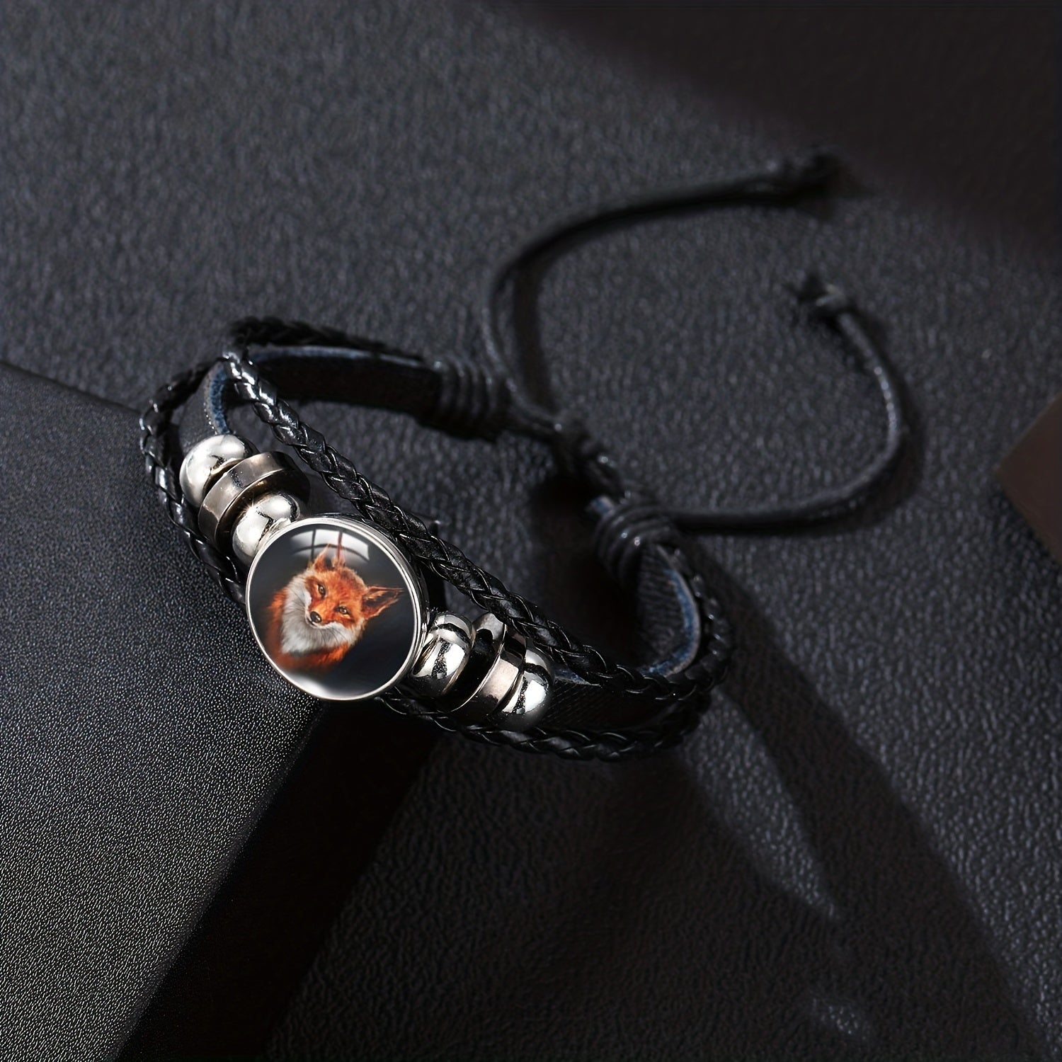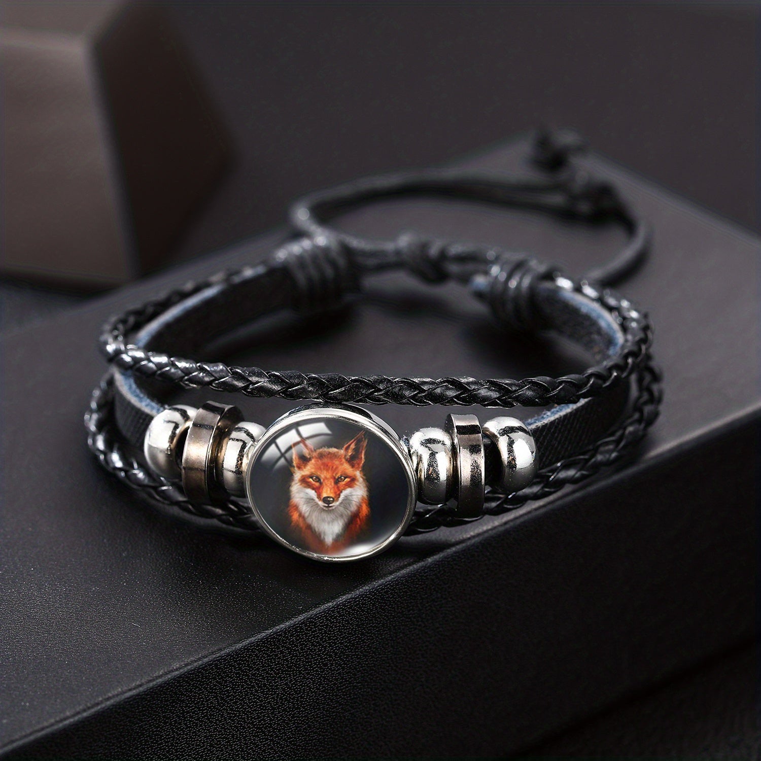 This stylish bracelet features a captivating wolf and fox portrait design. It's made of high-quality leather with a braided construction for durability and style.