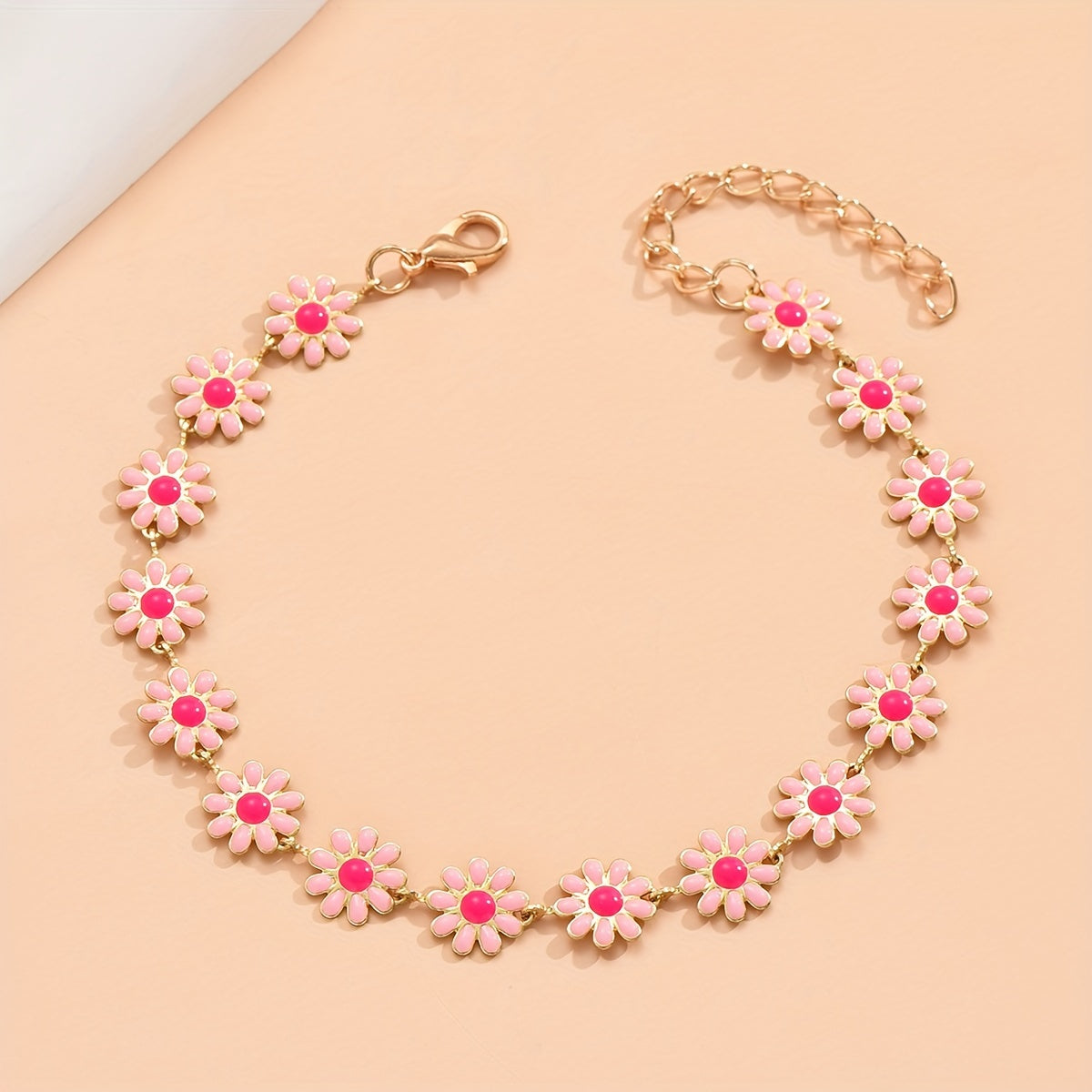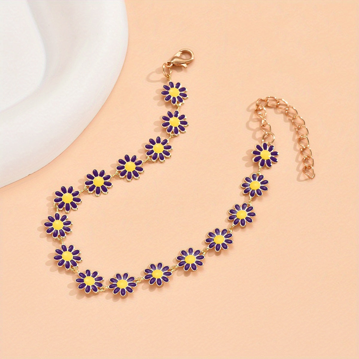 Add a touch of elegance to your summer beach style with this small dropping oil flower anklet. Perfect for surfing or simply enjoying the sunshine.