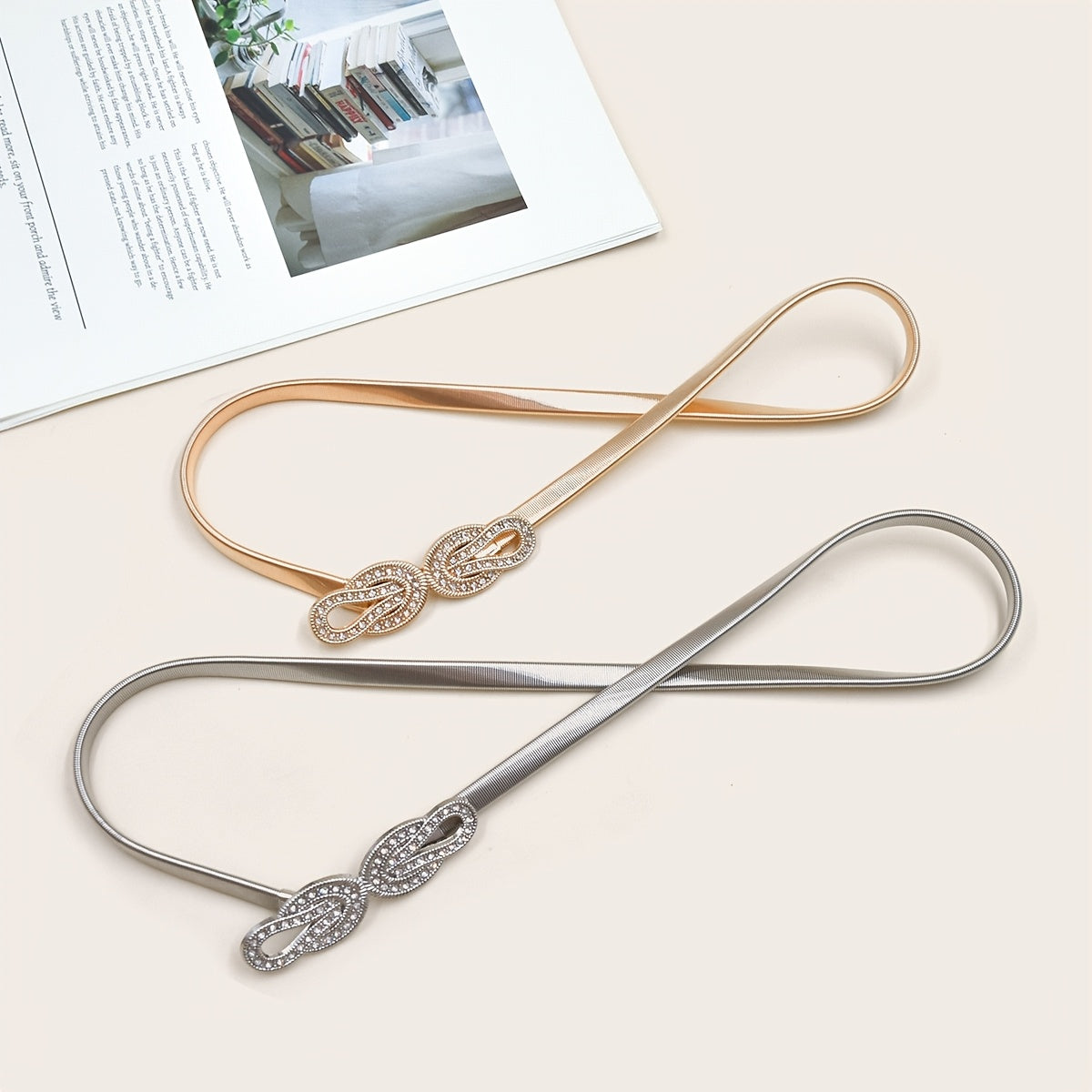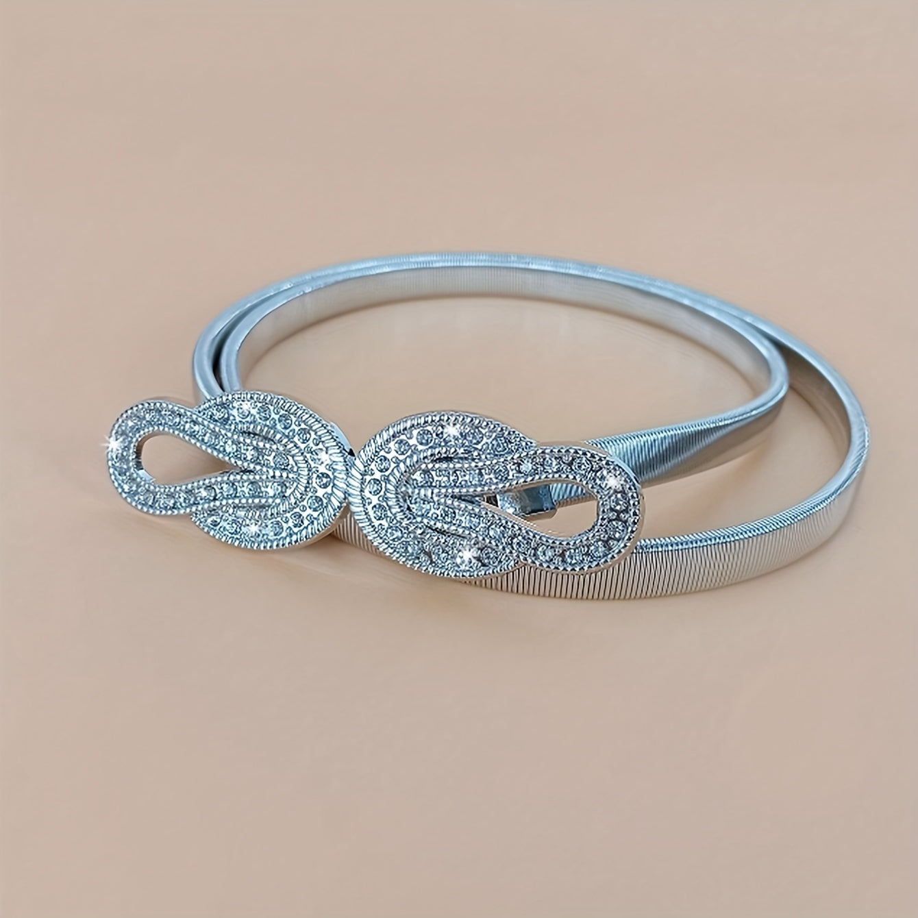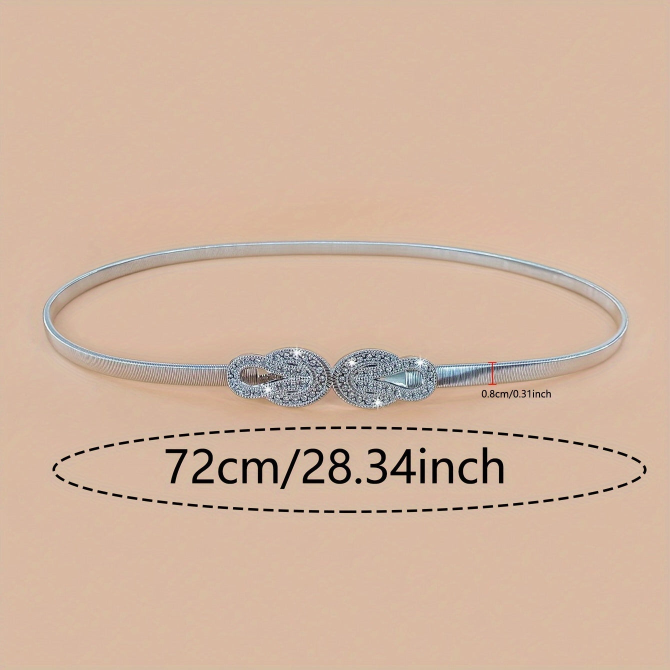 Add a touch of elegance to your outfits with this waist chain featuring twisted rhinestones and a golden hook. The elastic stretch design ensures a comfortable fit.