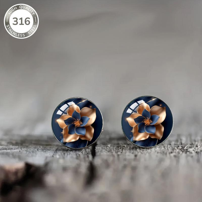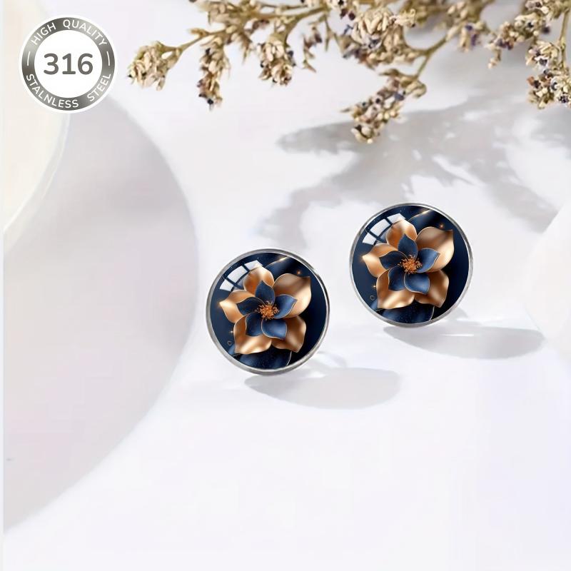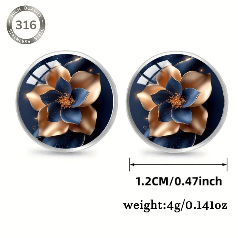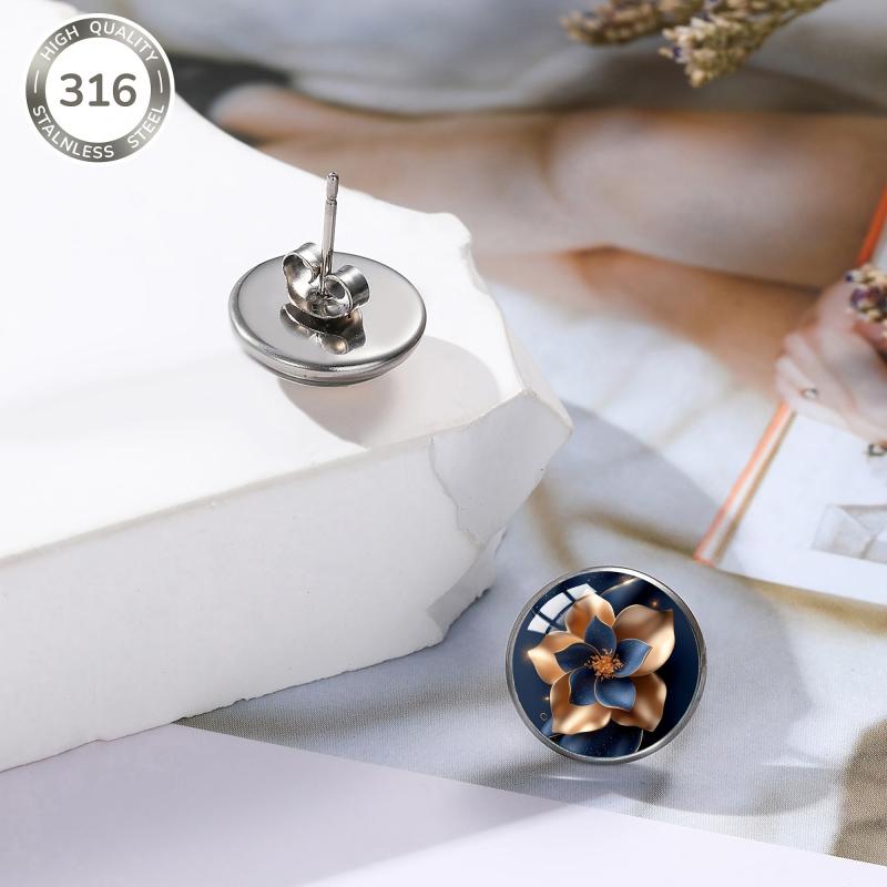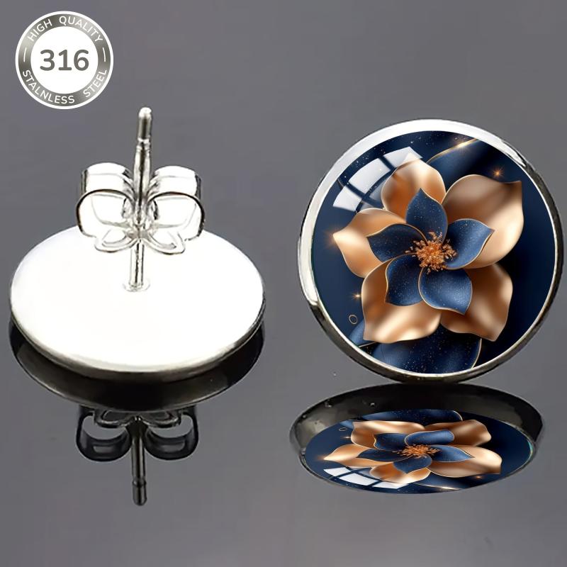 Get these elegant earrings featuring a starry sky flower pattern, made of 316 stainless steel with inlaid convex glass. Perfect for daily wear and parties.