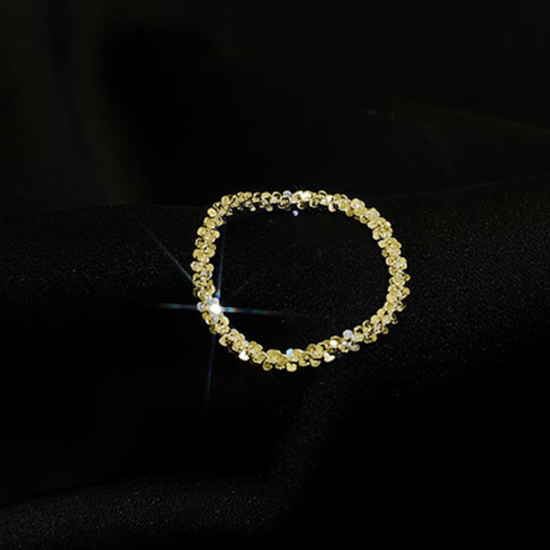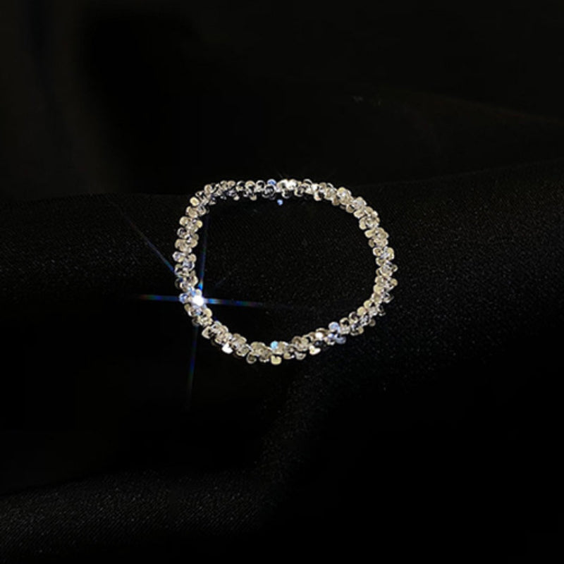 This bling bling thin ring is a stylish and versatile accessory that can be worn on the index finger with various outfits. It is perfect for stacking with other rings.