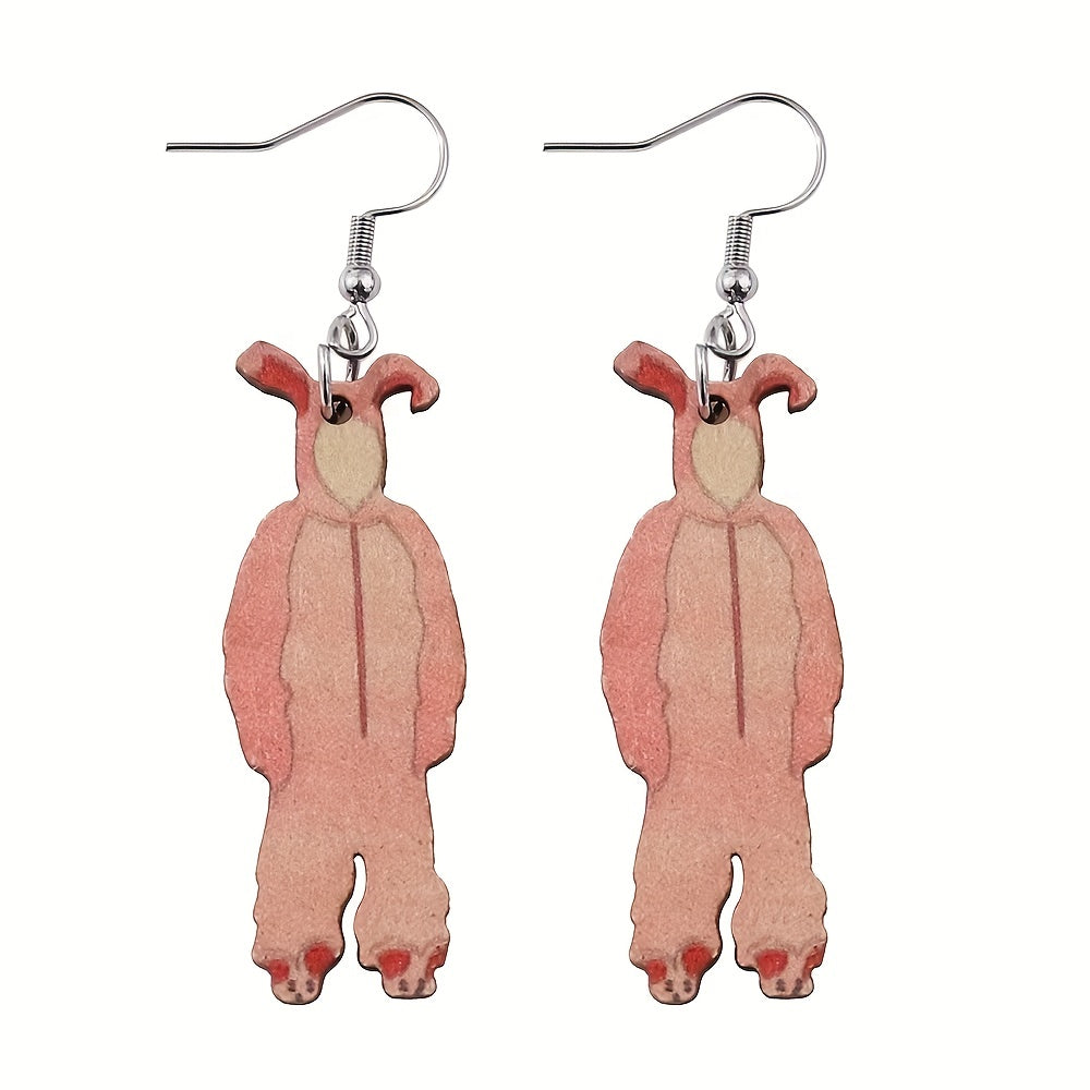 These adorable wooden rabbit bunny earrings are the perfect Easter accessory. They are double-sided for a unique look and are sure to make a statement at any party or gathering. Give them as a gift for Easter, birthdays, or family parties.