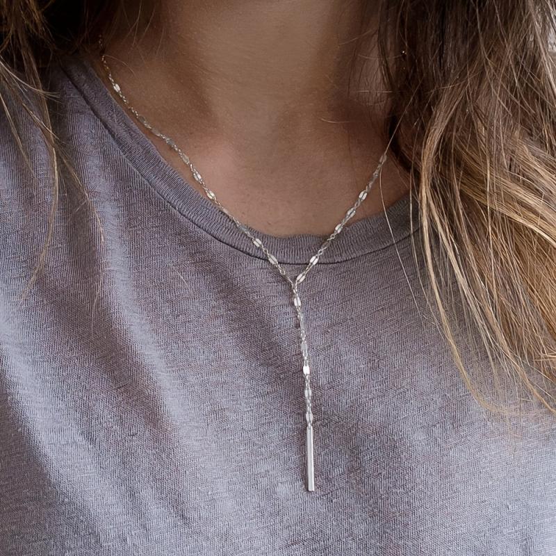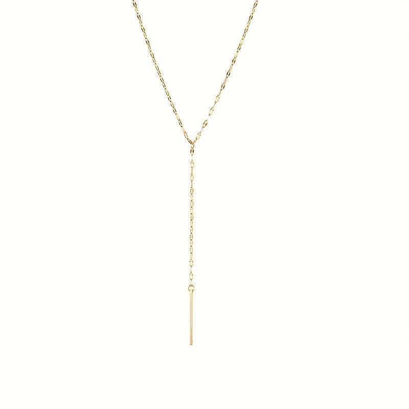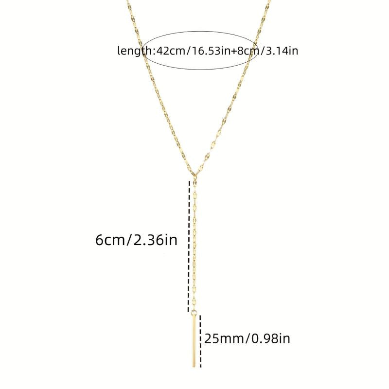 This Y shaped lip chain necklace is a minimalist stainless steel pendant that is versatile for casual attire year round. It is the perfect gift for any occasion.
