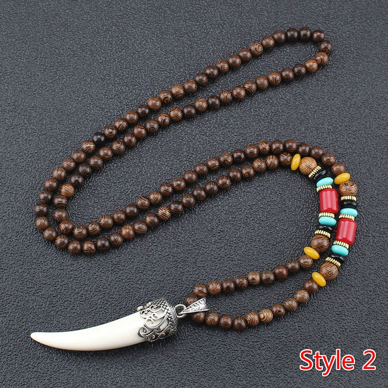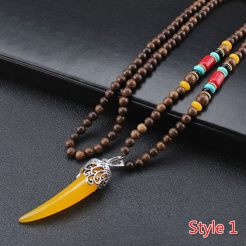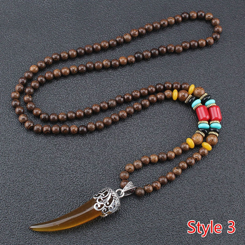This wooden bead pendant necklace is a stylish accessory for both men and women. The long length of the necklace makes it versatile for various outfits and occasions.