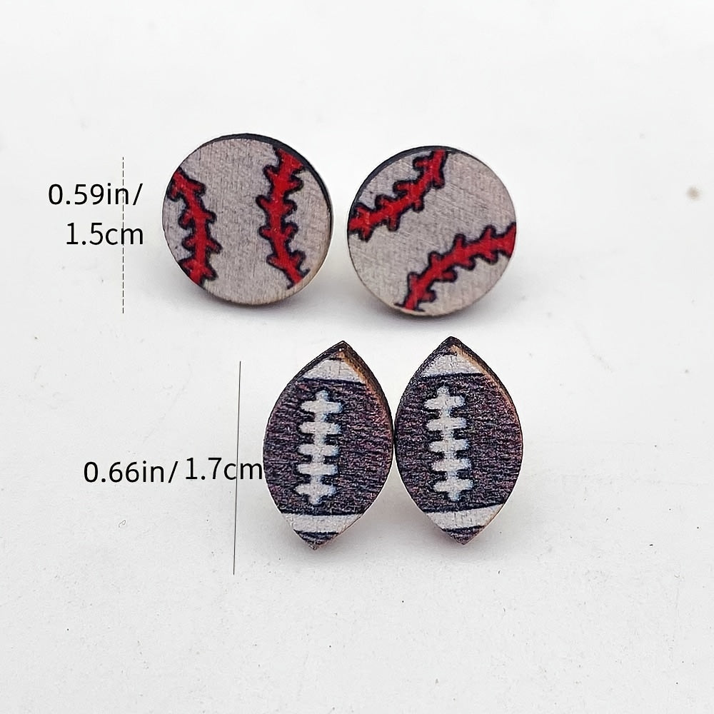 Enhance your style with these sport-themed wooden stud earrings suitable for daily wear.