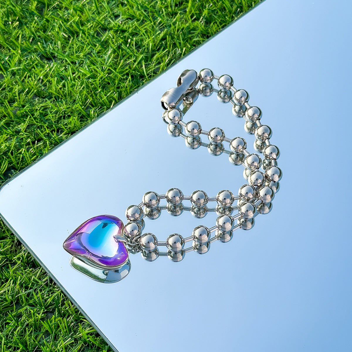 Add a bold statement to your look with this Y2K style pendant necklace. Features an exaggerated beads chain with a big love pendant. Perfect gift for women and girls.