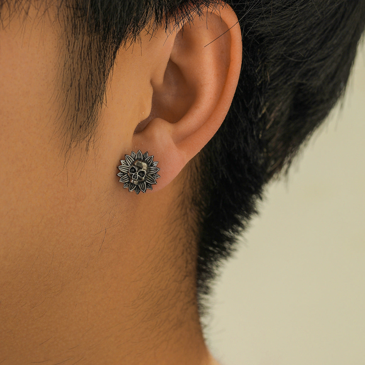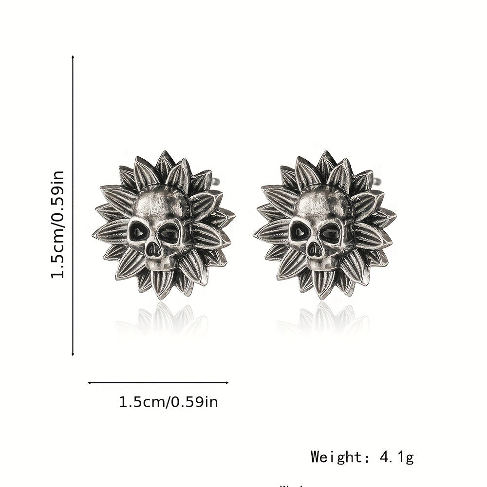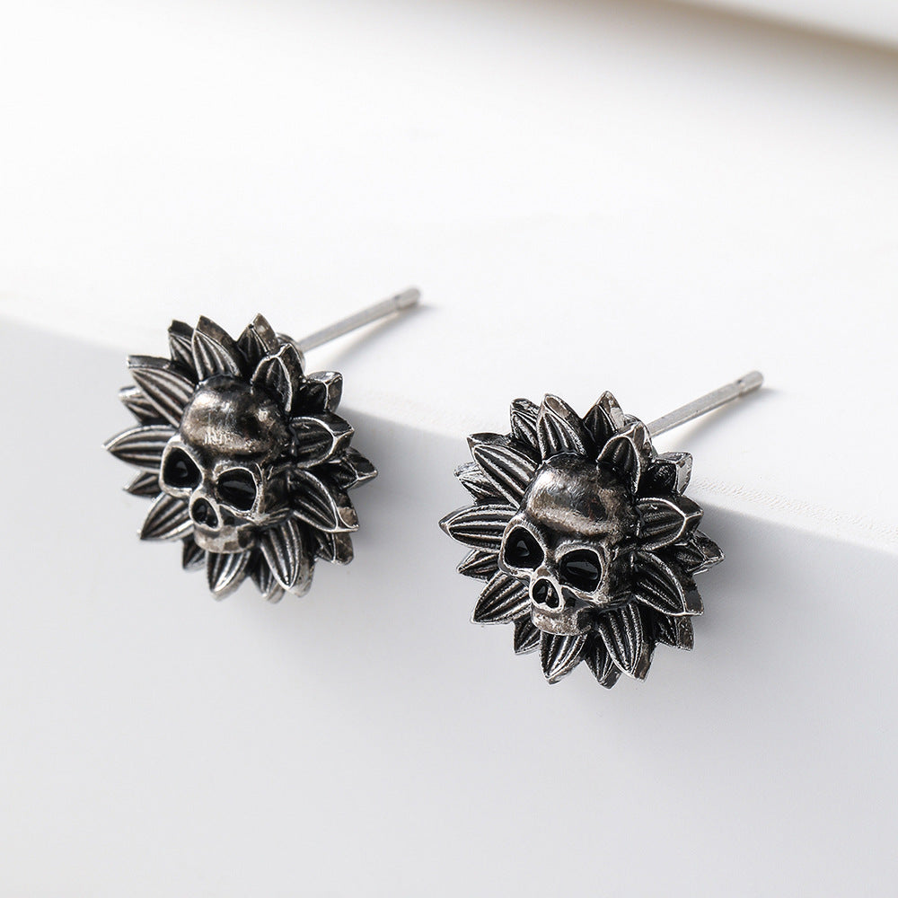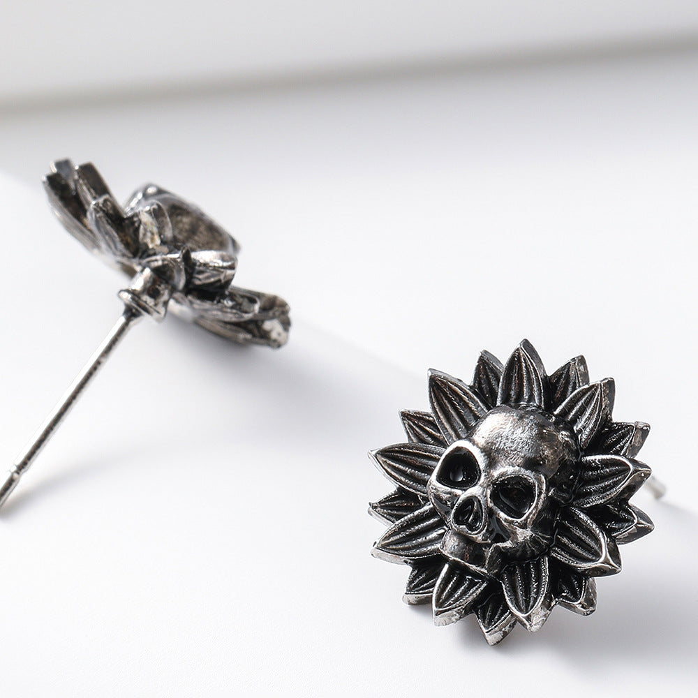 These hip hop stud earrings feature a dark skull flower design, perfect for a Y2K aesthetic.