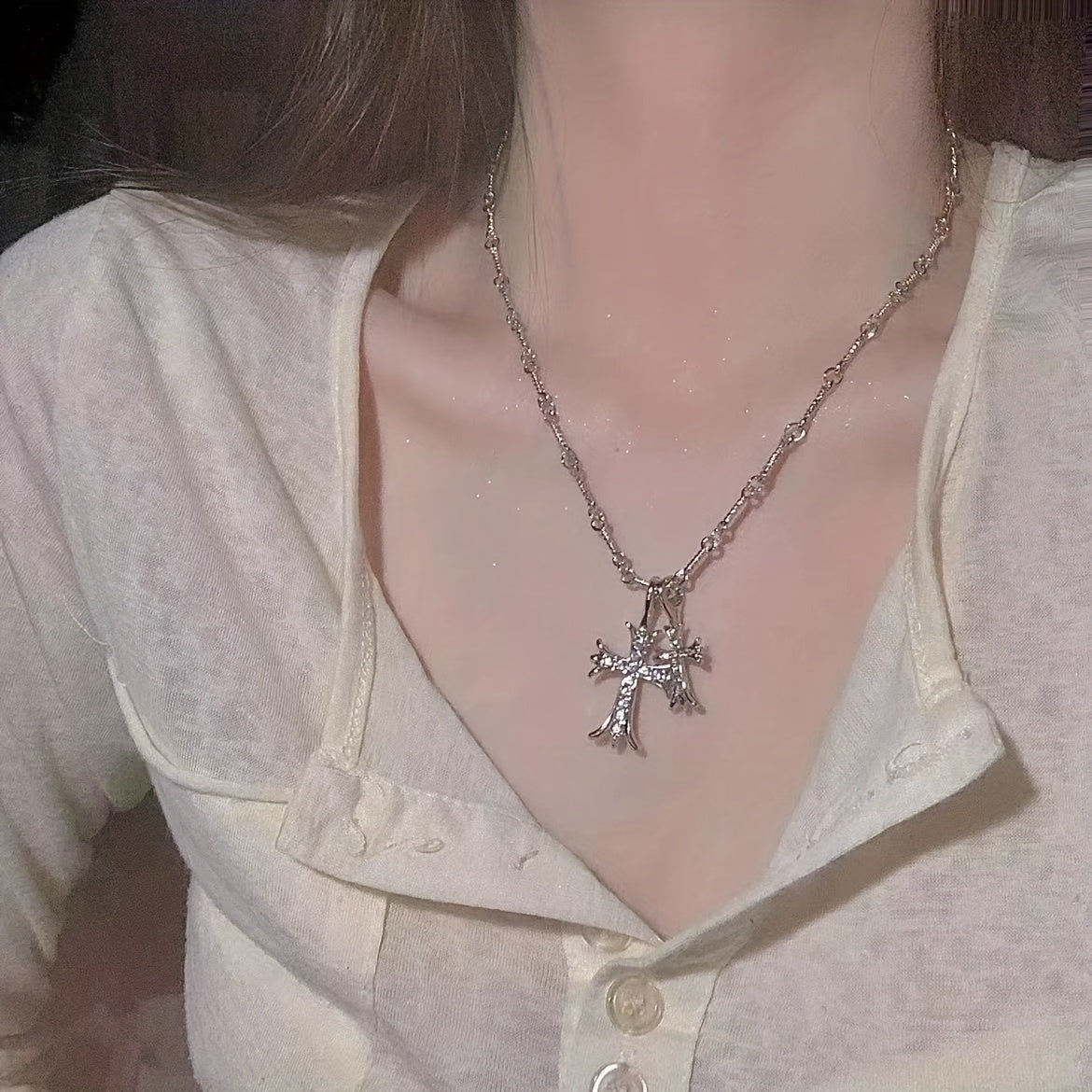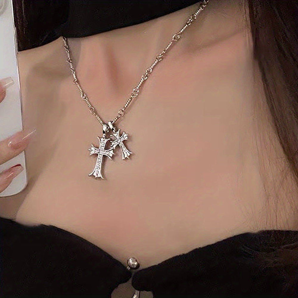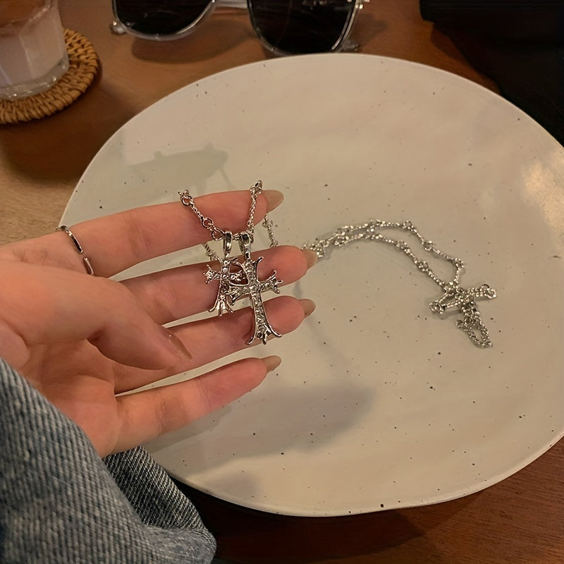 Add a touch of Y2K nostalgia to your outfit with this double cross long necklace. Perfect for birthday parties or as a stylish gift.