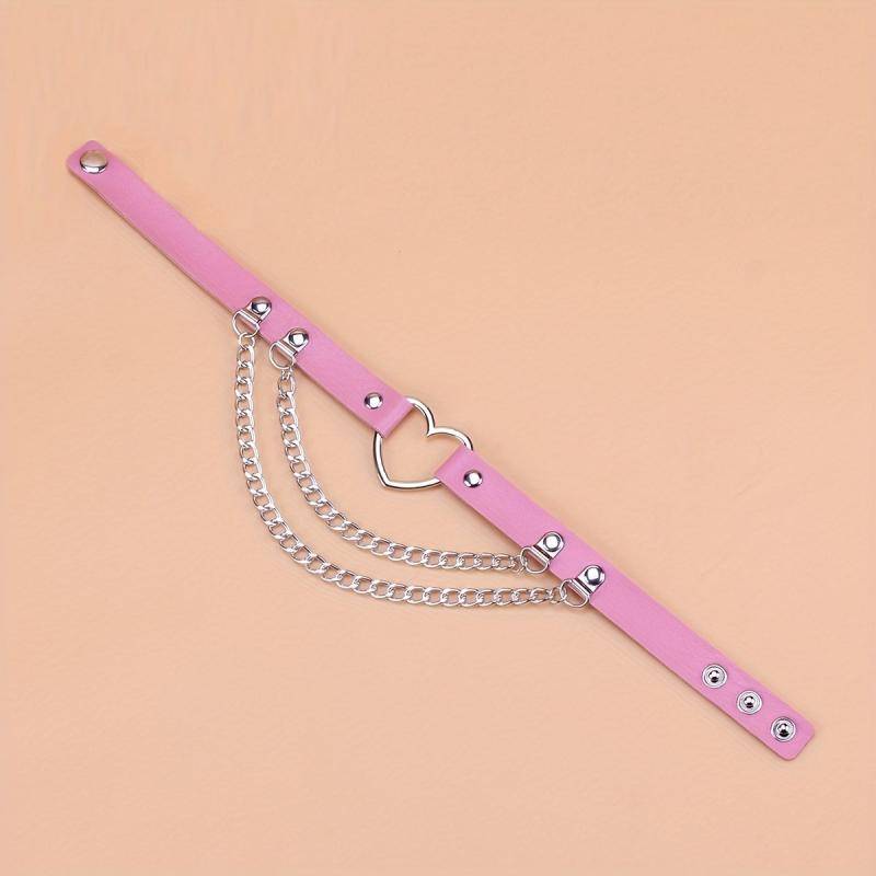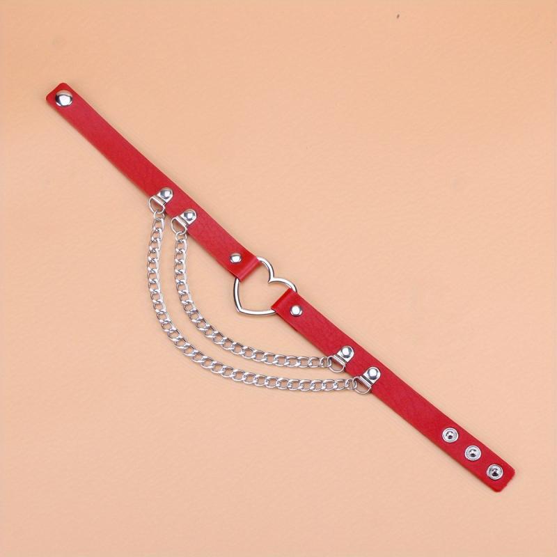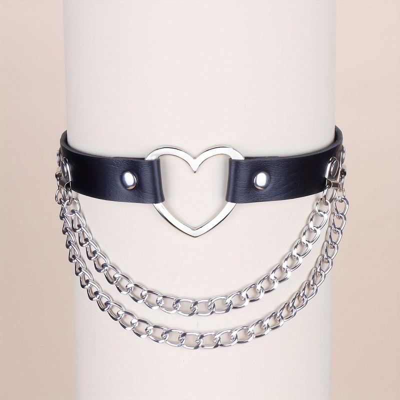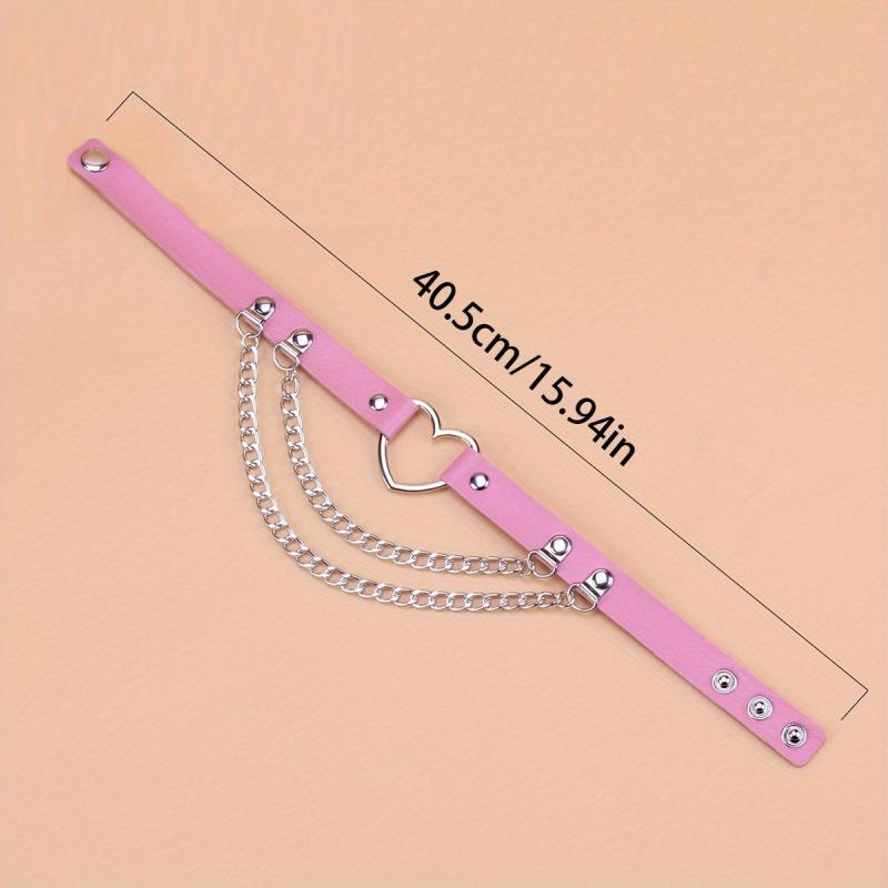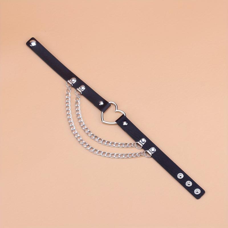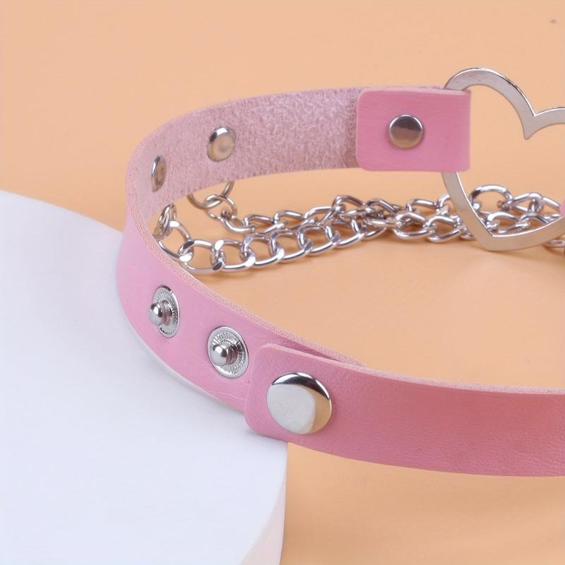Add a touch of Y2K flair to your outfit with this sexy PU leather choker featuring heart chain and studded details. Perfect for casual attire, parties, or as a unique Valentine's Day gift.