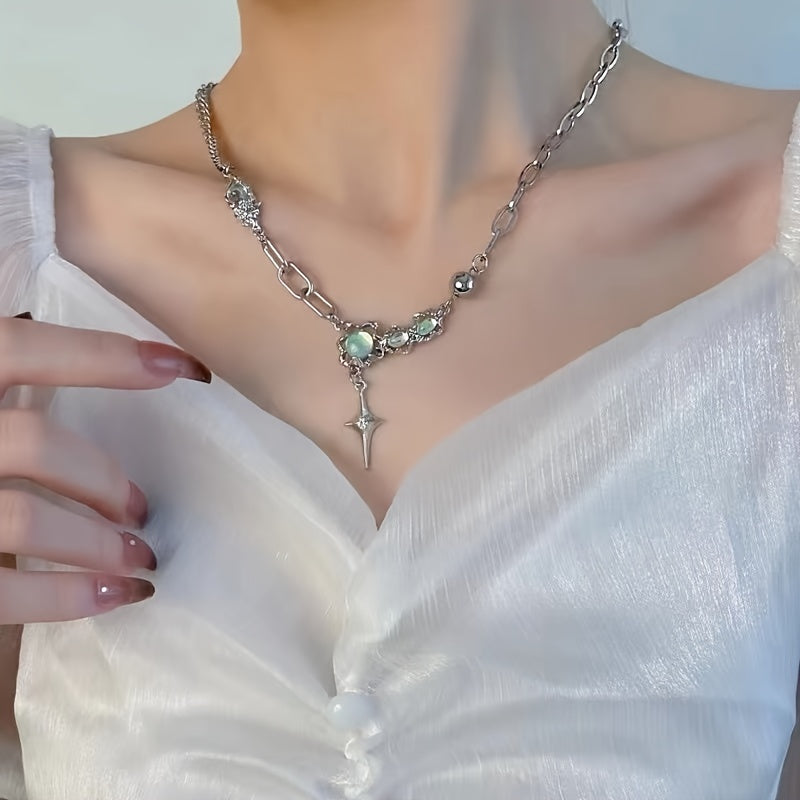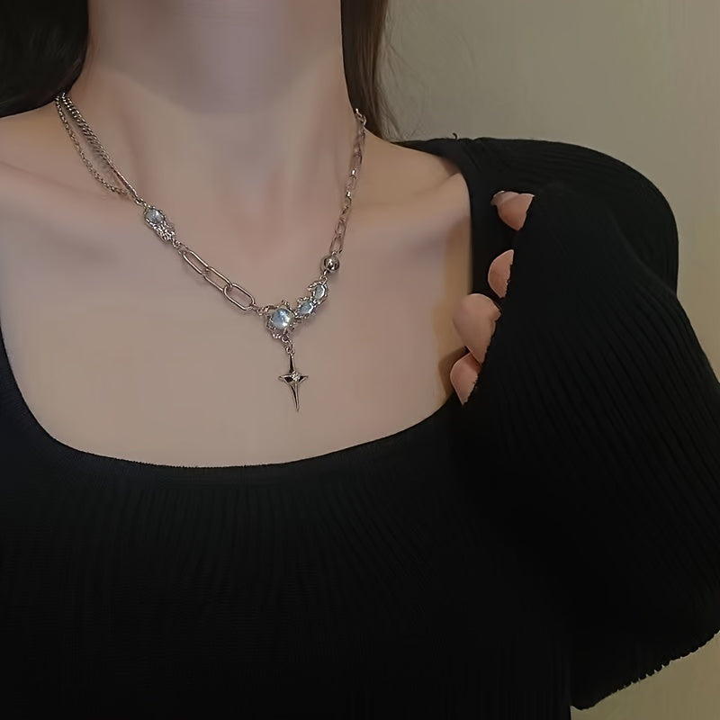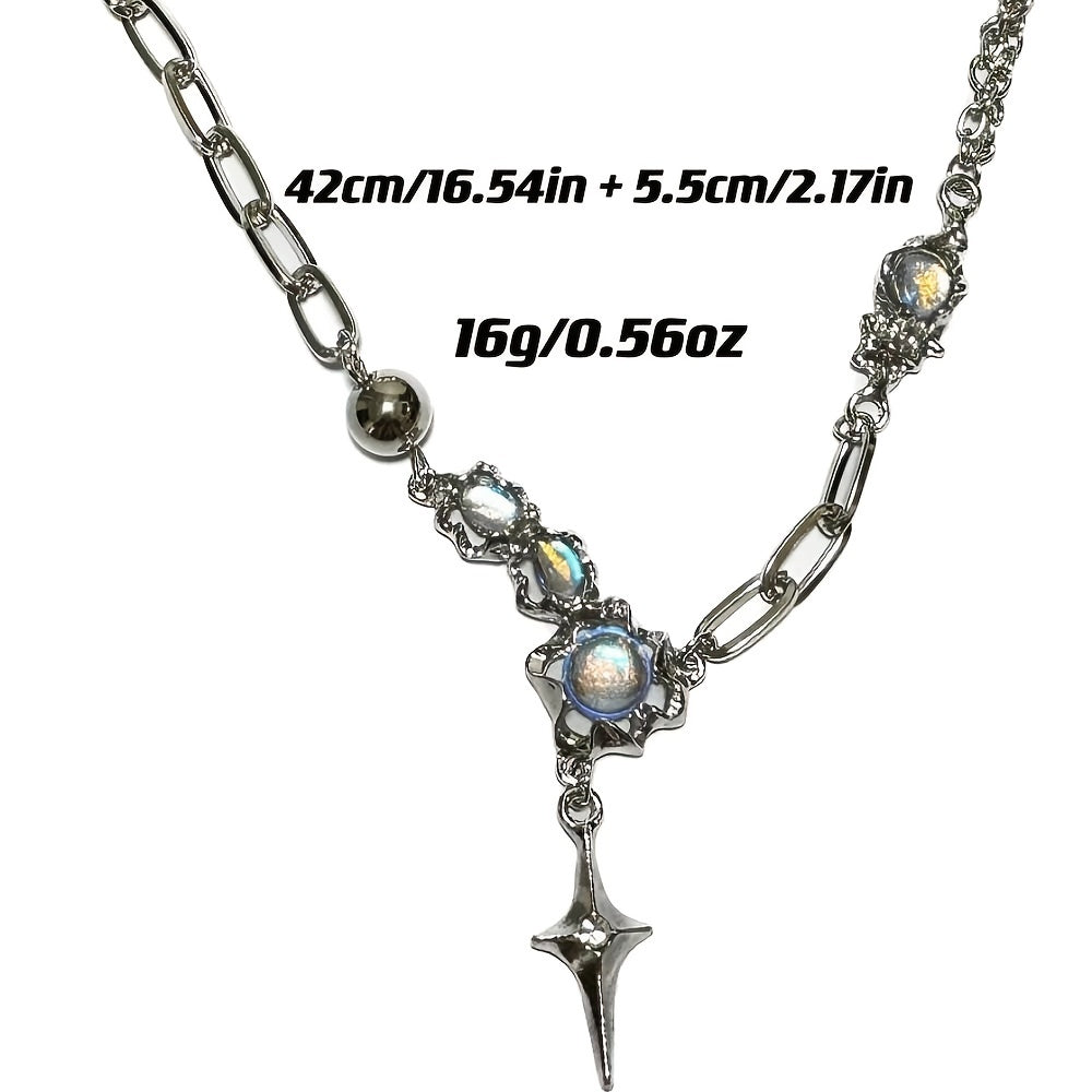 Add a touch of Y2K style to your outfit with this pendant necklace featuring inlaid moonstone. The adjustable clavicle chain is perfect for women and girls.