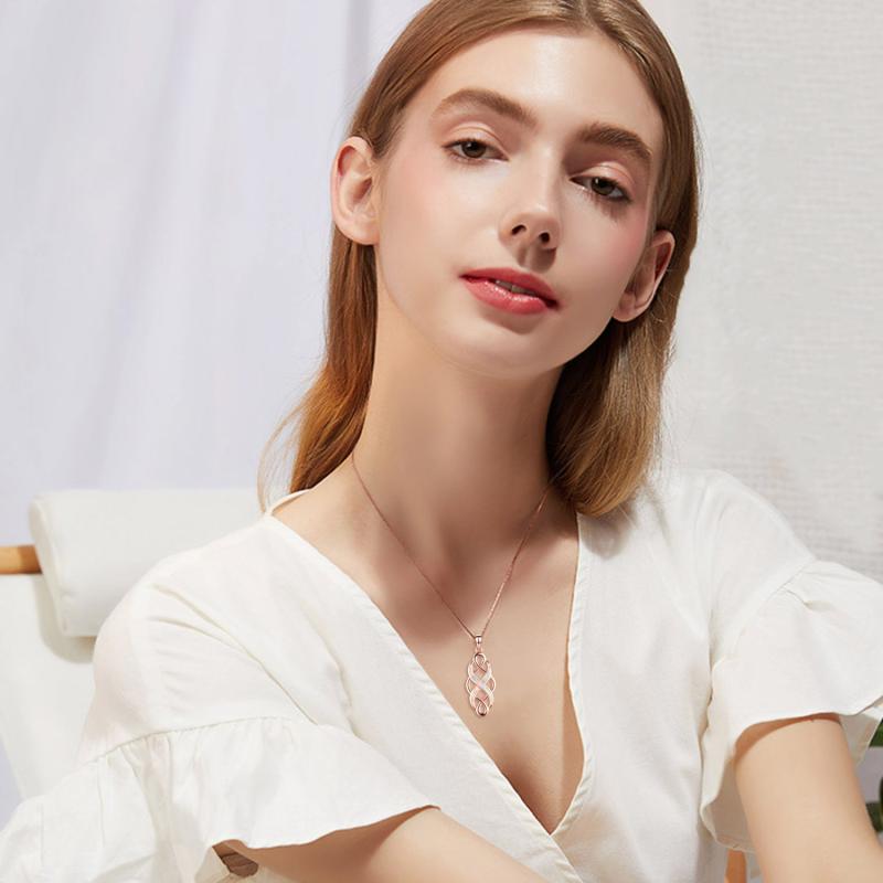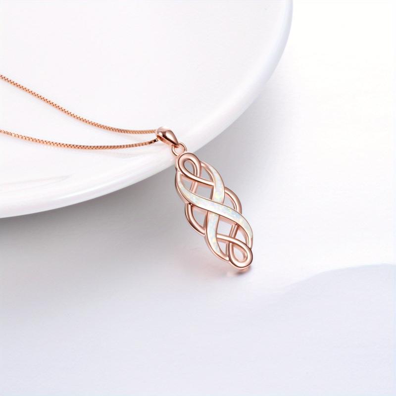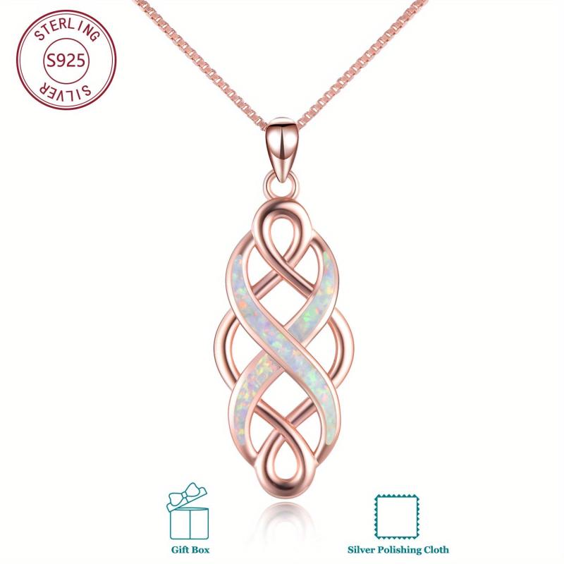 This exquisite YFN necklace features a Celtic knot design with a stunning created opal pendant. Crafted from high-quality sterling silver, this infinity love jewelry is a perfect gift for someone special.
