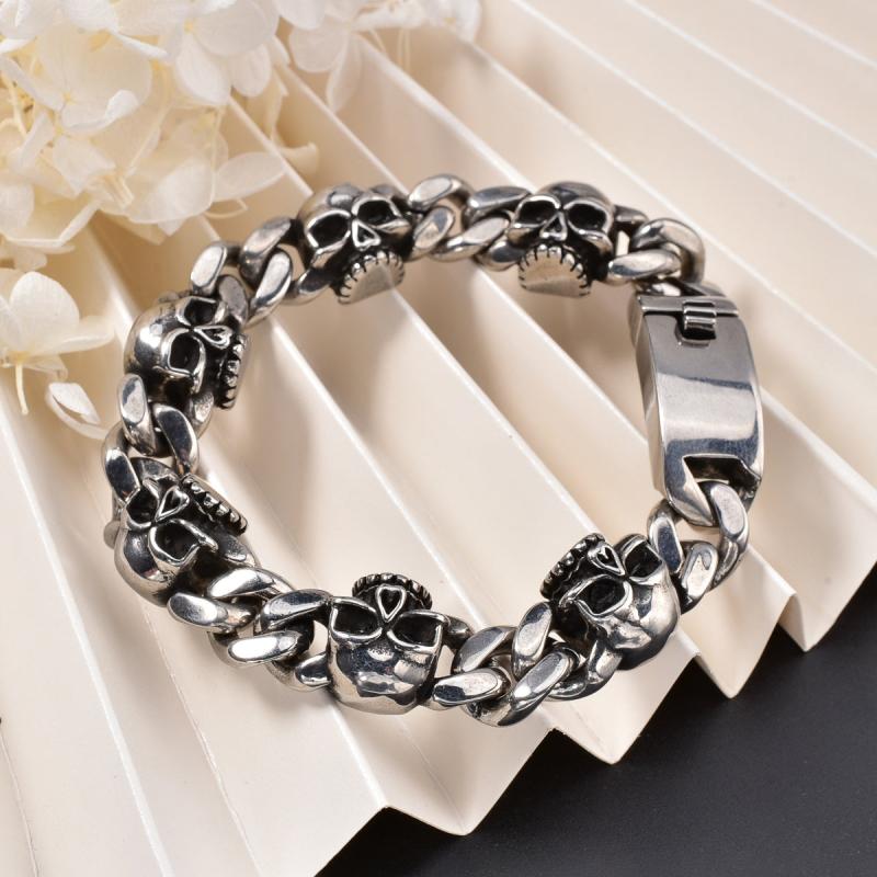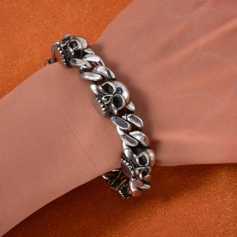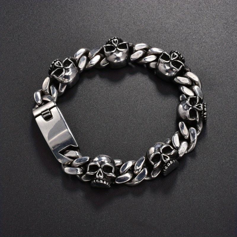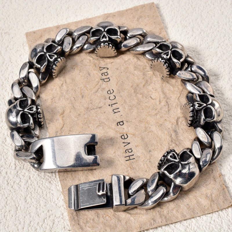 Add a touch of gothic flair to your outfit with this vintage titanium skull cuff bracelet. Perfect for Halloween parties, birthdays, and casual wear.