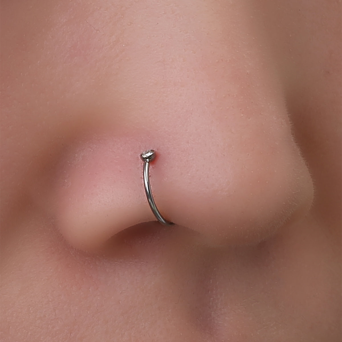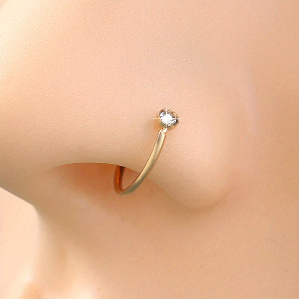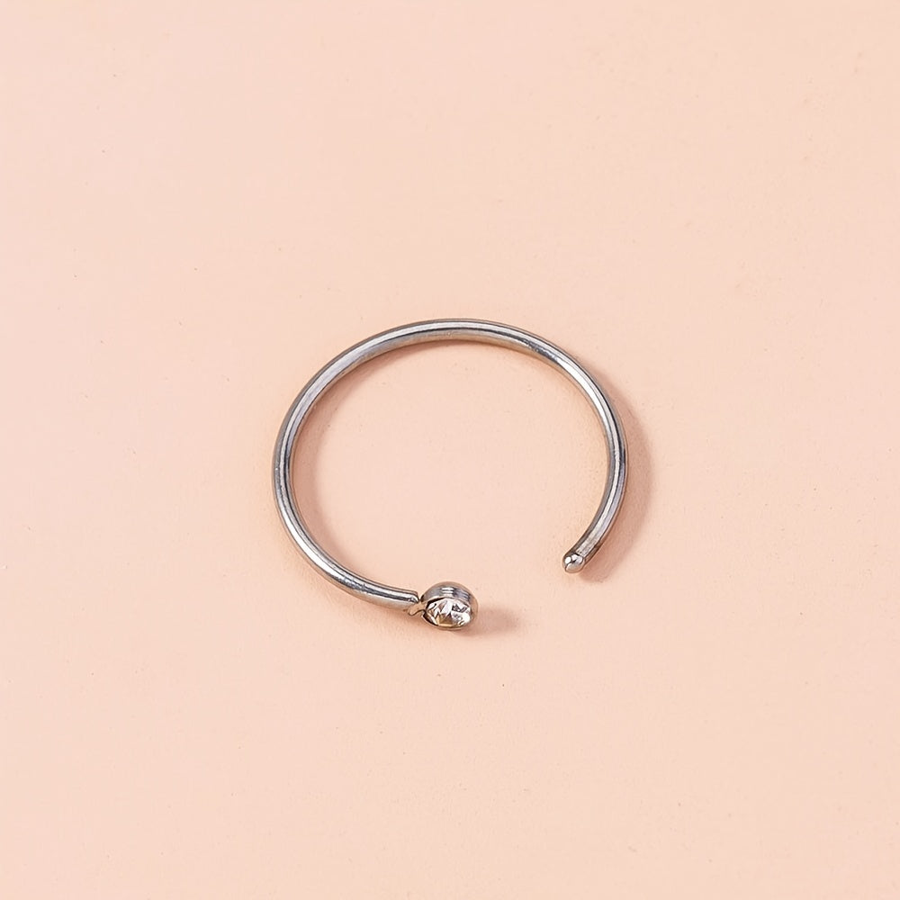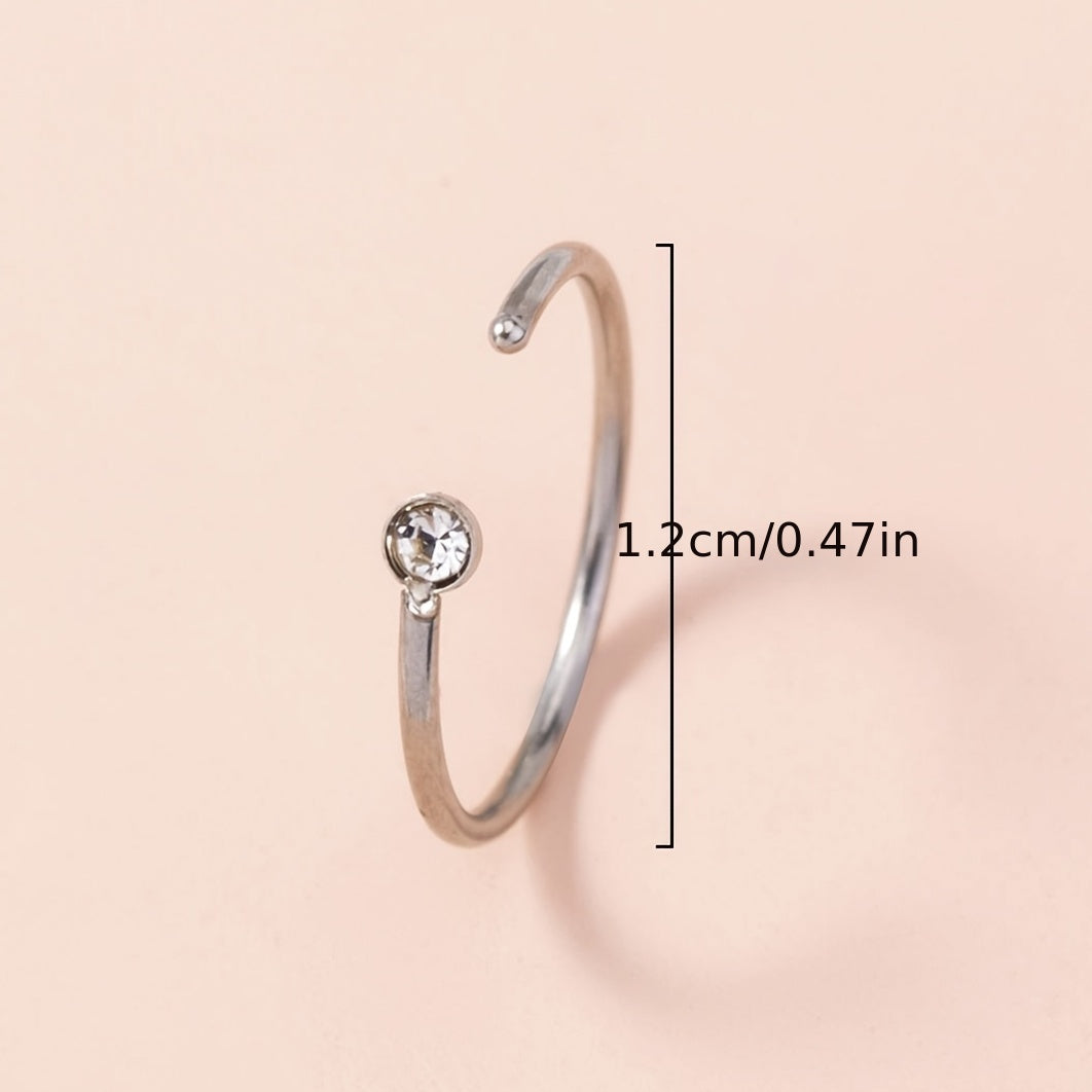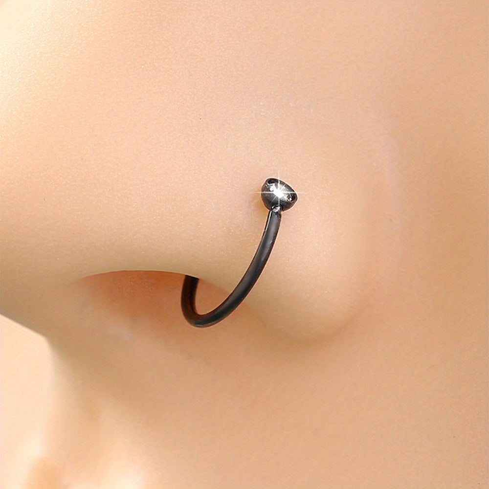This stainless steel nose ring features inlaid zircon, creating an elegant look. Ideal for cartilage piercings, it adds a touch of glamour to your style.