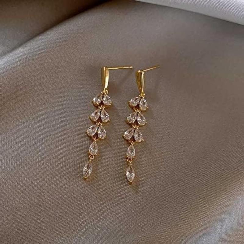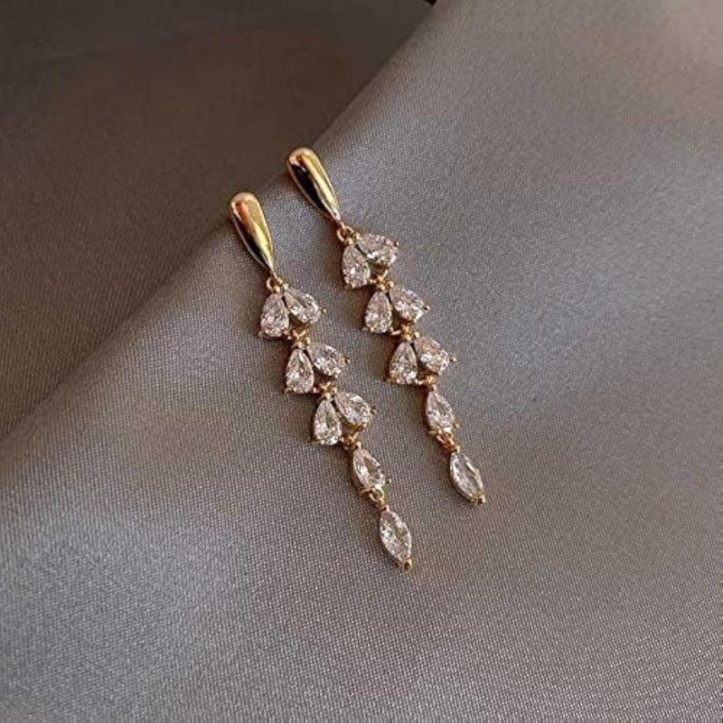 Elegant tassel drop earrings featuring zircon stones for a touch of sparkle.