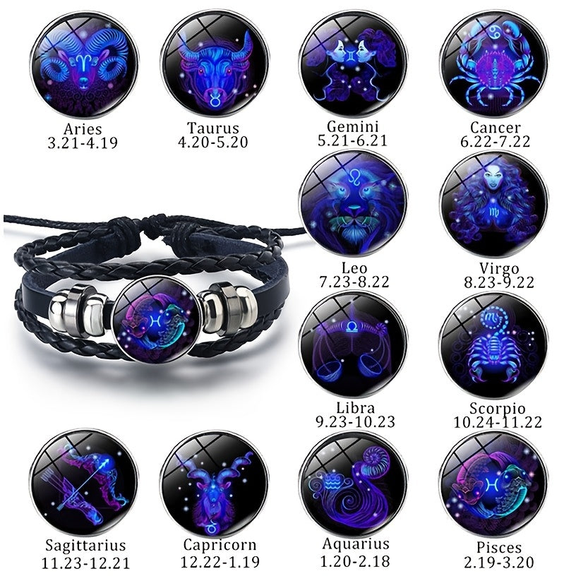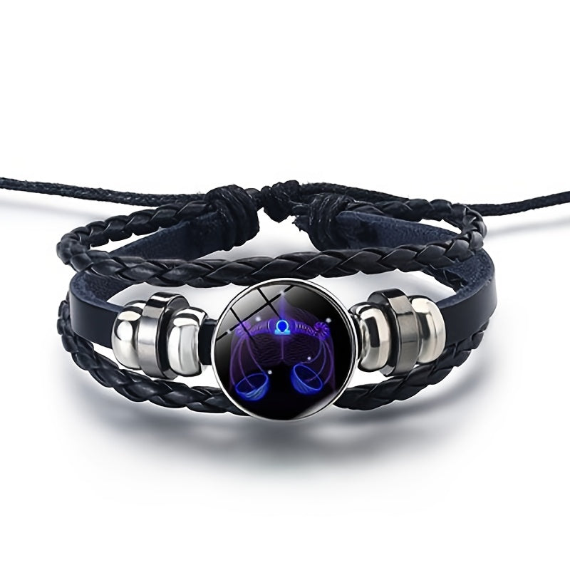 Embrace your zodiac sign with this stylish leather bracelet that glows in the dark. Perfect for astrology enthusiasts and night-time lovers.