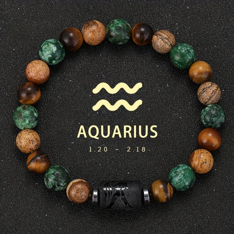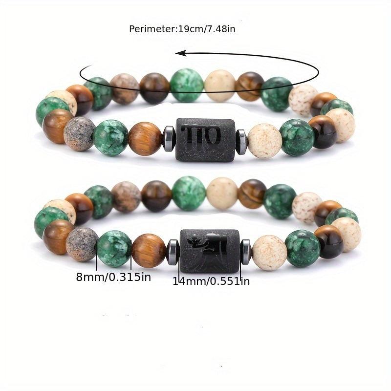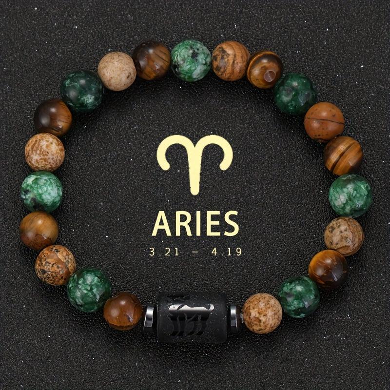 This 12 Zodiac Natural Stone Bead Bracelet features earthy tones, perfect for astrology enthusiasts. The unisex design makes it a great gift.
